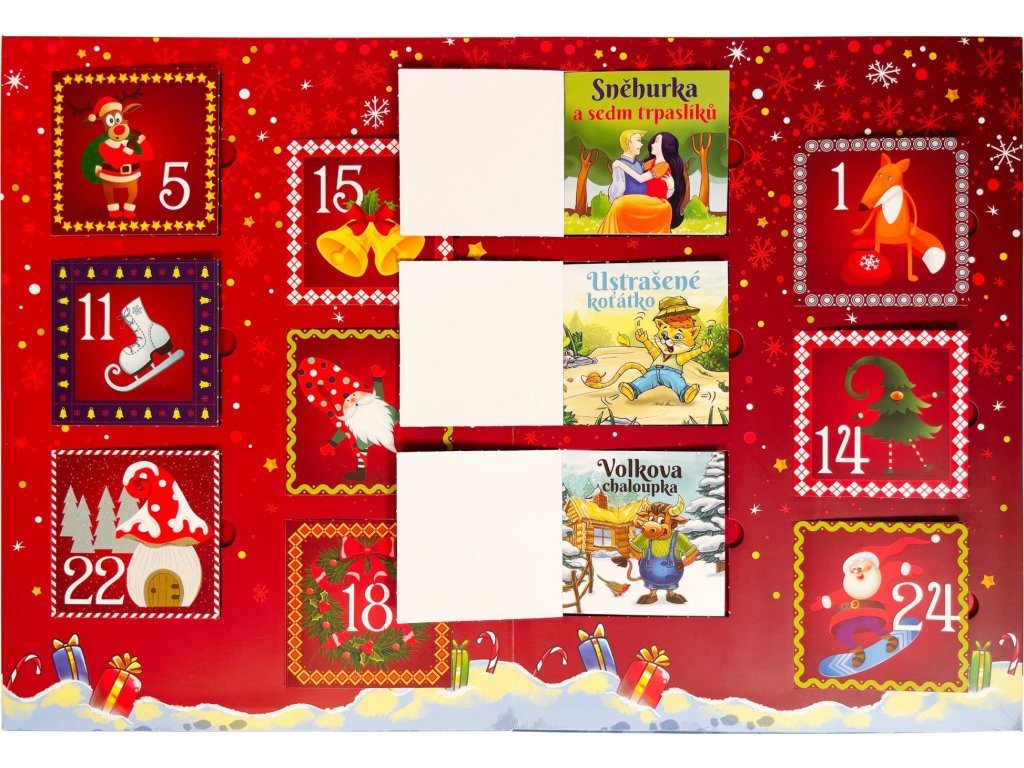 Čím víc se Vánoce blíží, tím spíš se jich nemůžeme dočkat. Proměňte dlouhé večery plné očekávání v radostné a kouzelné chvíle. Za okénky tohoto adventního kalendáře se ukrývají malé knížky. Každý večer před spaním po celý prosinec až do Štědrého dne si můžete společně přečíst jednu pohádku a vytvořit si hezkou rodinnou předvánoční tradici. Uvnitř kalendáře najdete 24 okének se známými pohádkami, například Ošklivé káčátko, Popelka, O koblížkovi, Tři malá prasátka, Vlk a kůzlátka nebo Princezna na hrášku. Náš knižní adventní kalendář – to je kouzelný čas čtení pro nejmenší v adventním čase roku 2025!