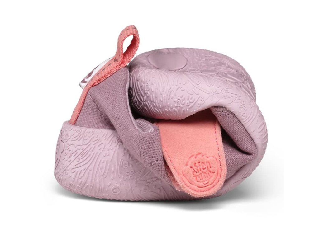 Affenzahn Barefoot Prewalkers Cotton Walky Otter Purple jsou ideální barefoot botičky pro první nejisté krůčky dětí. Decentní a hravý vzhled a perfektní zpracování. Prodyšný svršek z bio organické bavlny spolu s tenkou gumovou podrážkou zajišťují komfort a optimální vývoj nožky. Mají spoustu vychytaných dětských detailů - levá a pravá bota mají v zadní části poutko skládající dohromady obrázek zvířátka, když jsou vedle sebe.