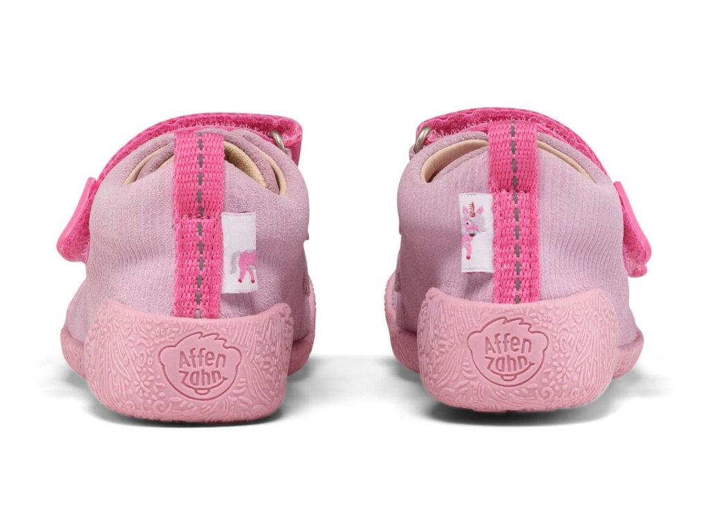 Affenzahn Barefoot Prewalkers Leather Walky Leather Unicorn Rose jsou ideální barefoot botičky pro první nejisté krůčky dětí. Decentní a hravý vzhled a perfektní zpracování. Svršek z kůže spolu s tenkou gumovou podrážkou zajišťují komfort a optimální vývoj nožky. Mají spoustu vychytaných dětských detailů - levá a pravá bota mají v zadní části poutko skládající dohromady obrázek zvířátka, když jsou vedle sebe.