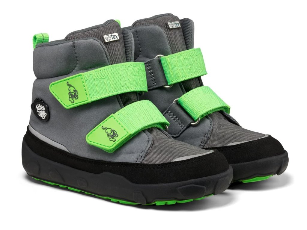 Se spoustou vychytaných dětských detailů - levá a pravá bota mají v zadní části poutko skládající dohromady obrázek pantera, když jsou vedle sebe, reflexní prvky, dětské obrázky, outdoorová podrážka s hrubším vzorkem...