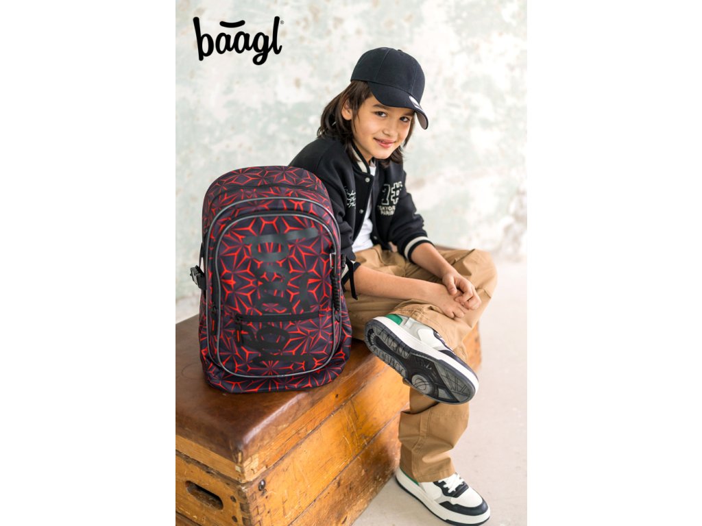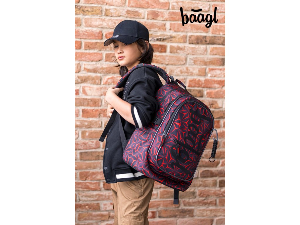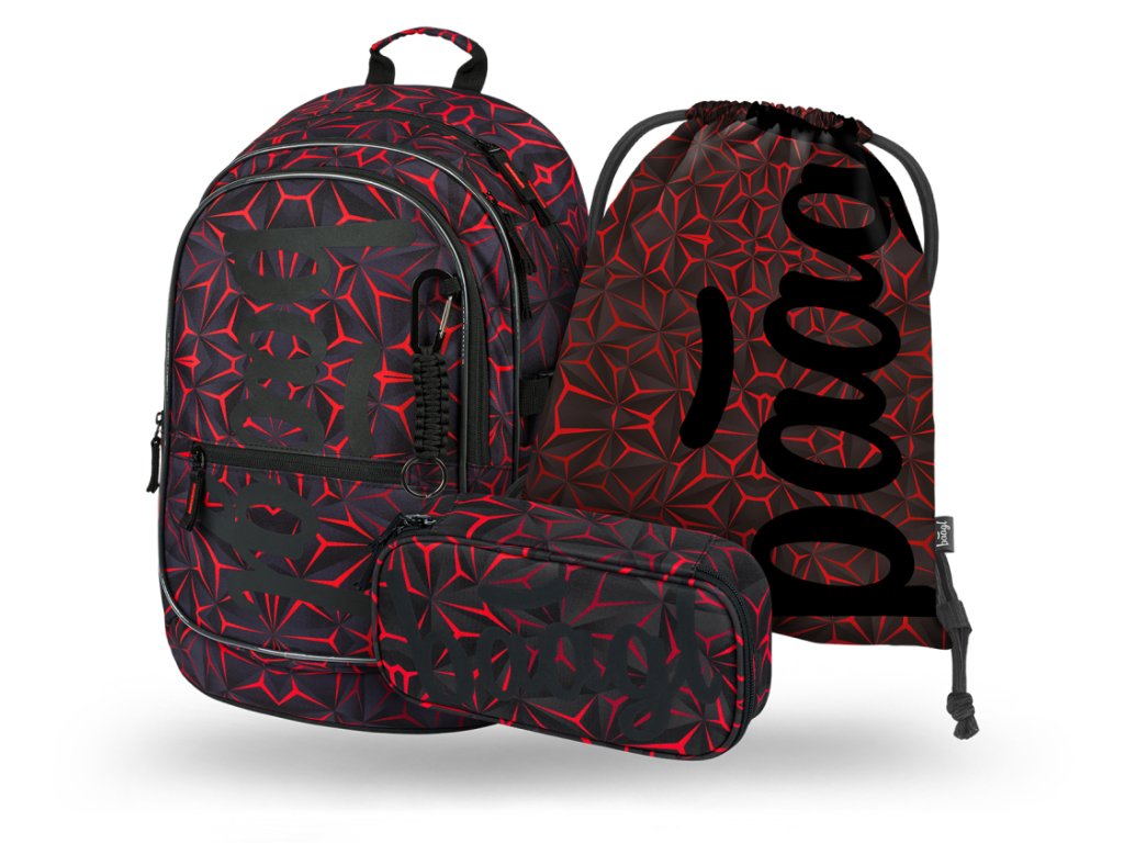 BAAGL 3 SET Core Red Polygon: batoh, penál, sáček