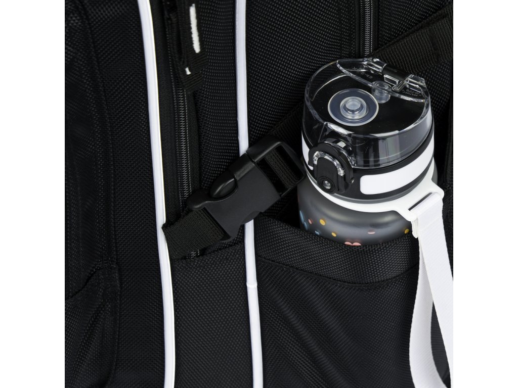 • Boční kapsy z pevného materiálu, které jsou vhodné pro jednu z našich láhví na pití.
