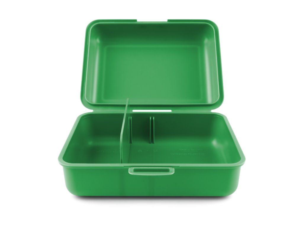 • Plastový box na svačinu v zelené barvě.