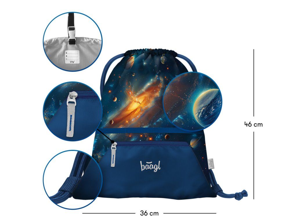 • Sáček je vybaven karabinkou díky, které ho lze připevnit na aktovku.