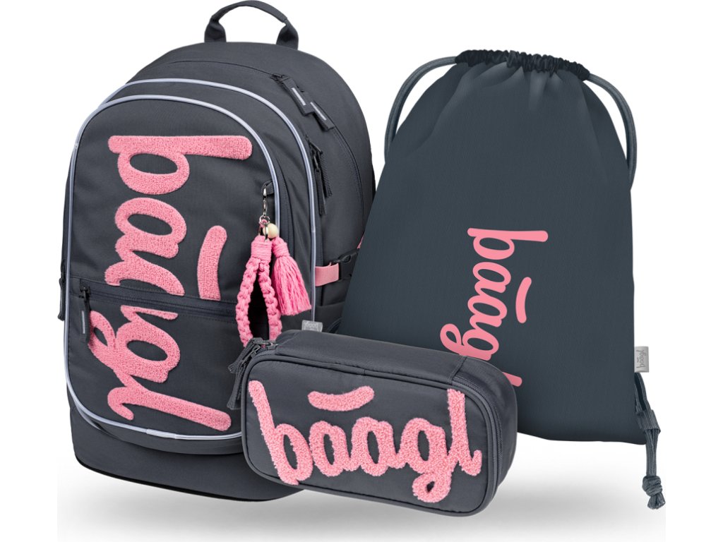 BAAGL SET 3 Core Logo růžový: batoh, penál, sáček GRS