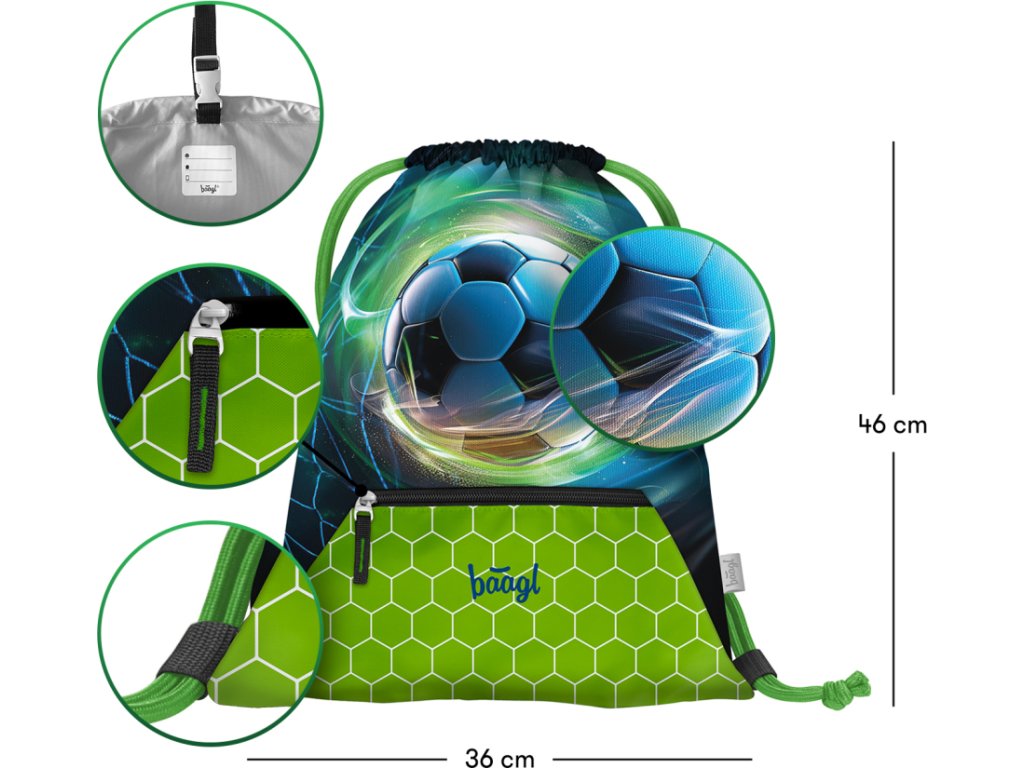 • Praktický sáček s kapsou na zip je vhodný nejen na přezůvky do školy, ale také na cesty, do města, na sportovní či jiné volnočasové aktivity.