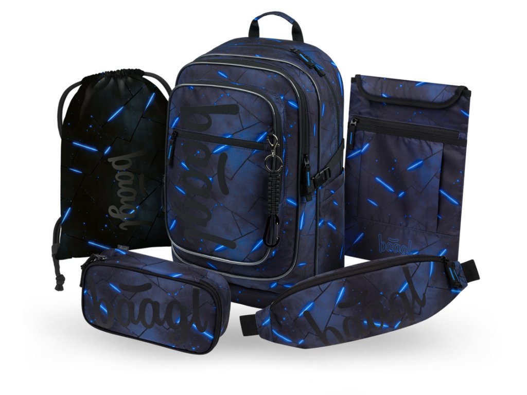 BAAGL SET 5 Cubic Flash: batoh, penál, sáček, ledvinka, obal na notebook GRS