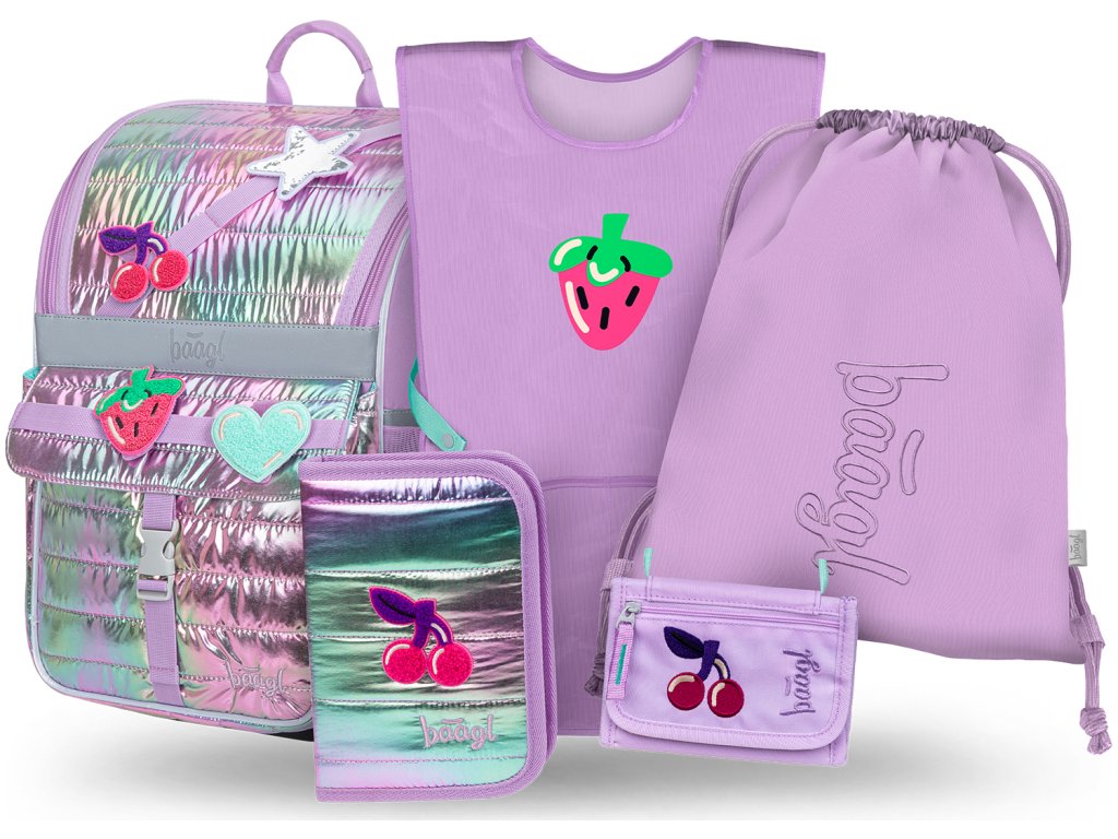 BAAGL SET 5 Zippy Lavender: aktovka, penál, sáček, zástěra, peněženka