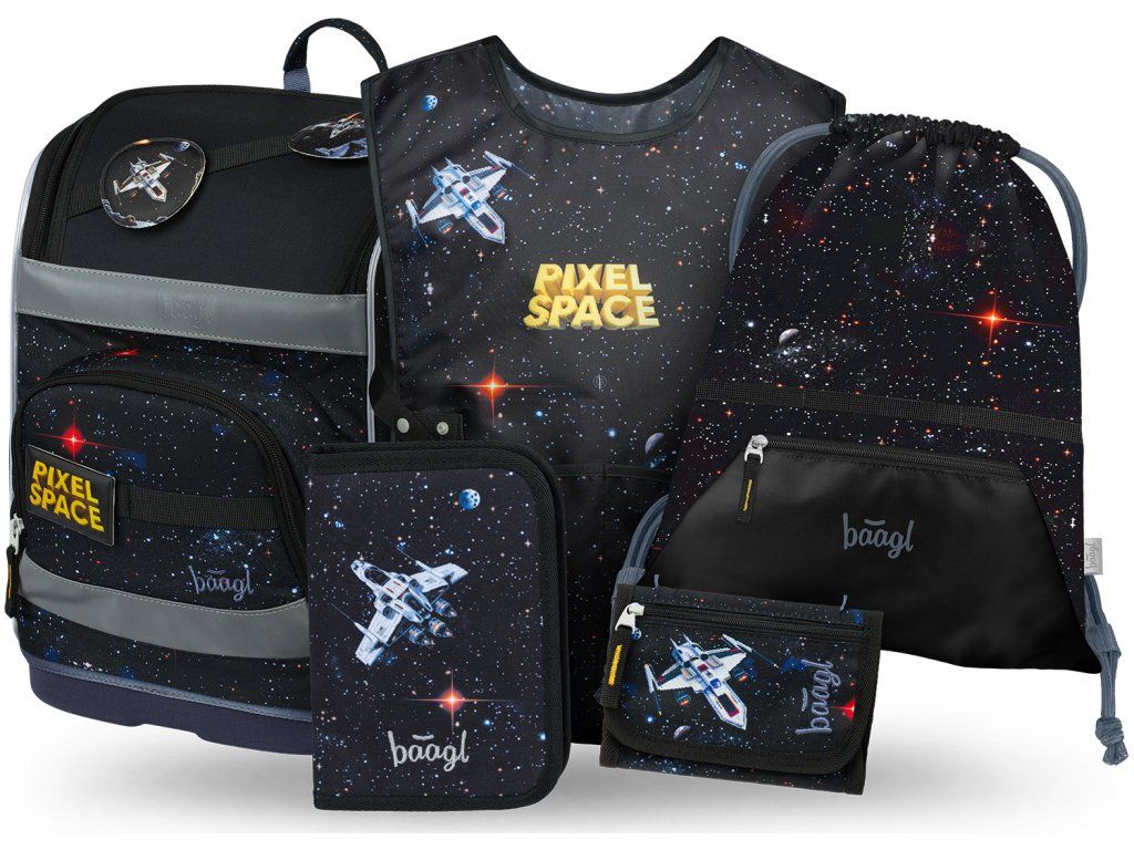 BAAGL SET 5 Zippy Plus Pixel Space: aktovka, penál, sáček, zástěra, peněženka