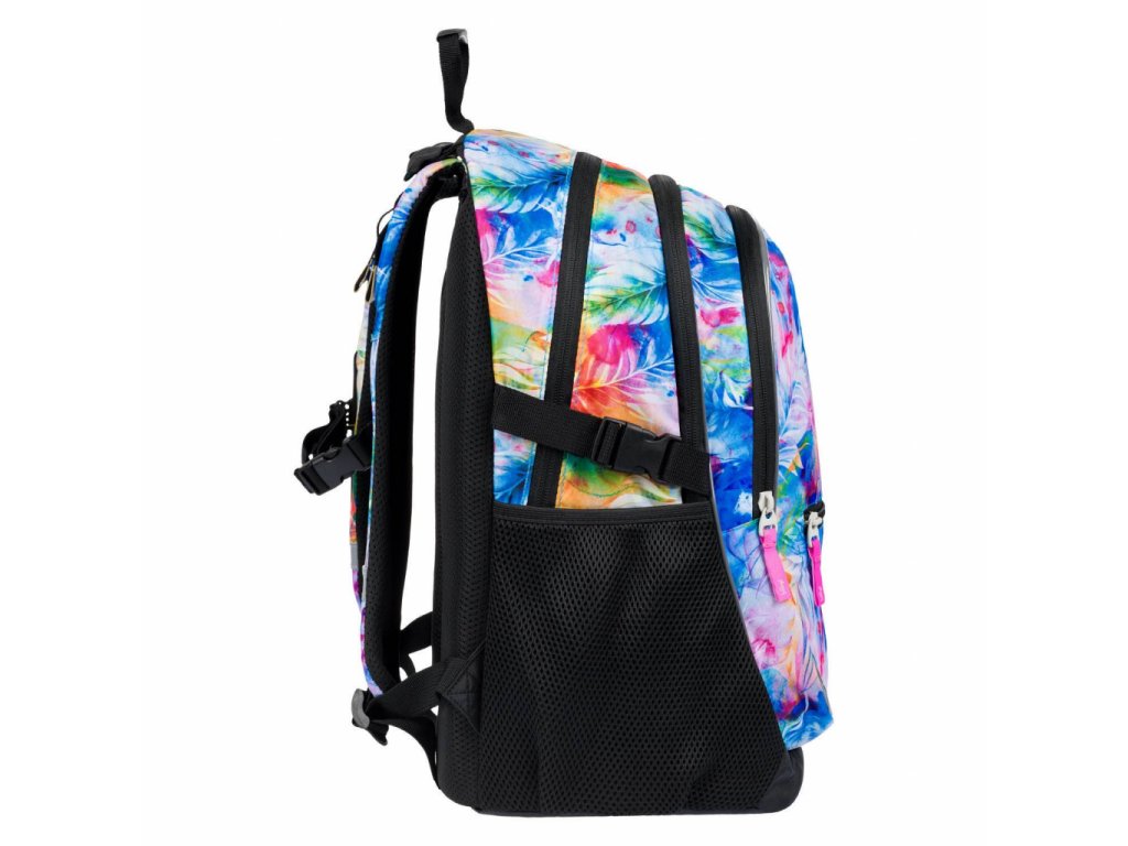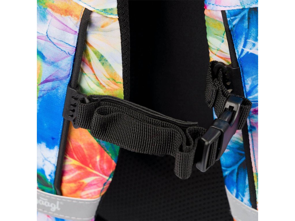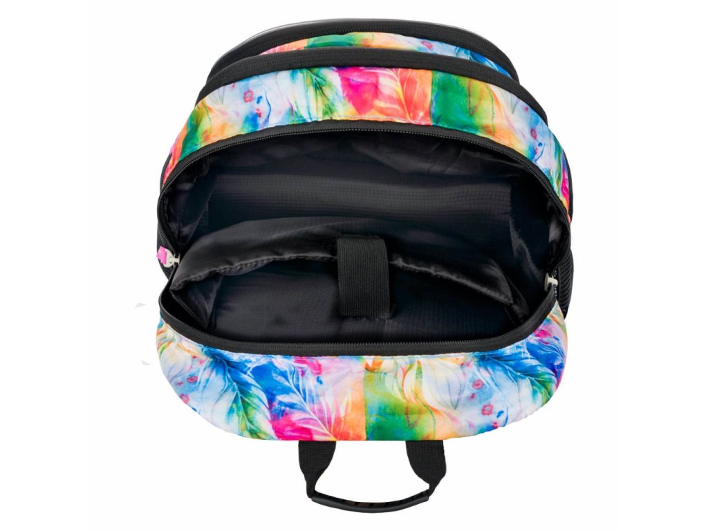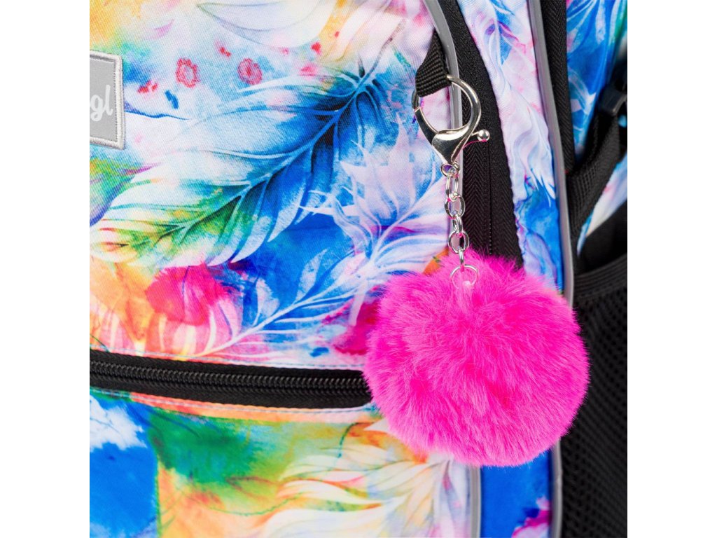 Školní batoh Baagl Core Akvarel je vymakaný do posledního detailu. Má 3 samostatné komory na zip. V té zadní je kapsa na 15 palcový notebook či tablet a v té přední kapsa na drobnosti a na tužky. Nechybí ani poutko na klíče a schované překvapení v podobě trendy náramku. V přední části batohu je navíc malá kapsa na zip na drobnosti.