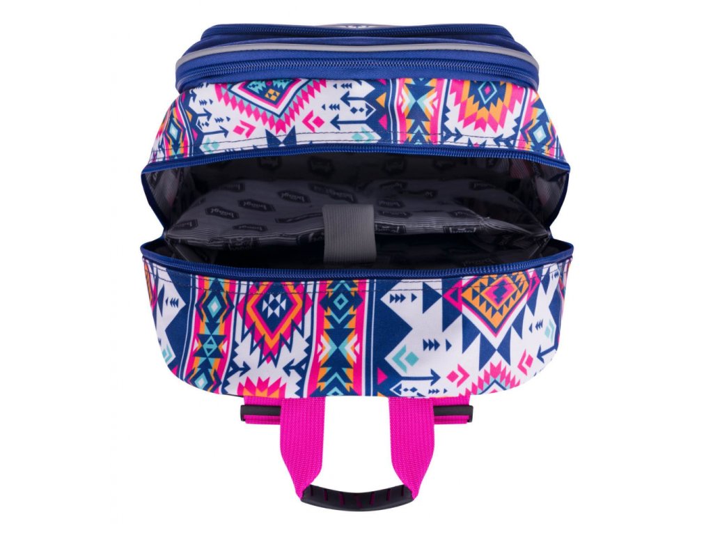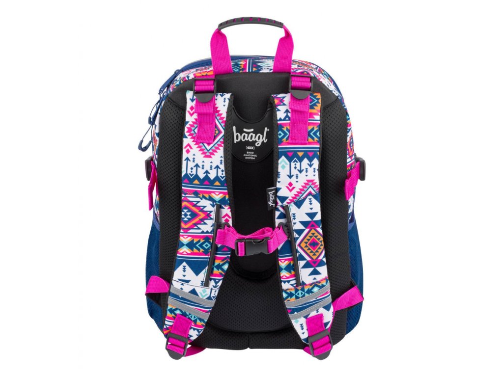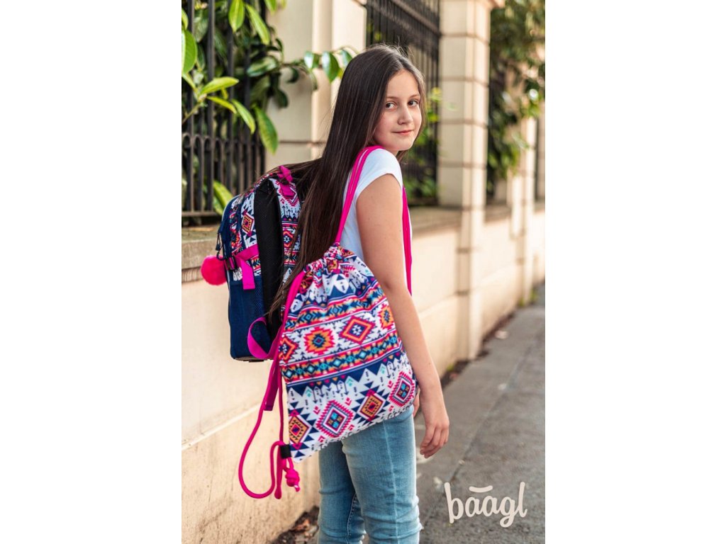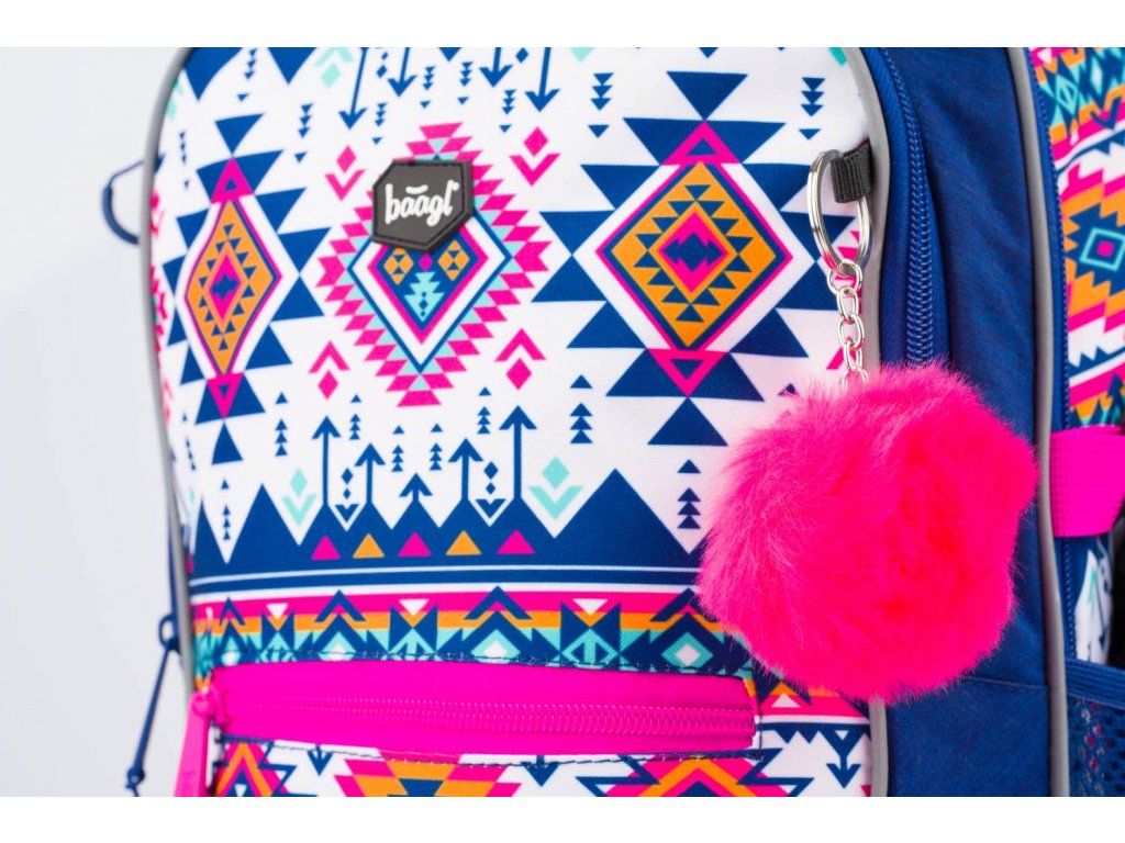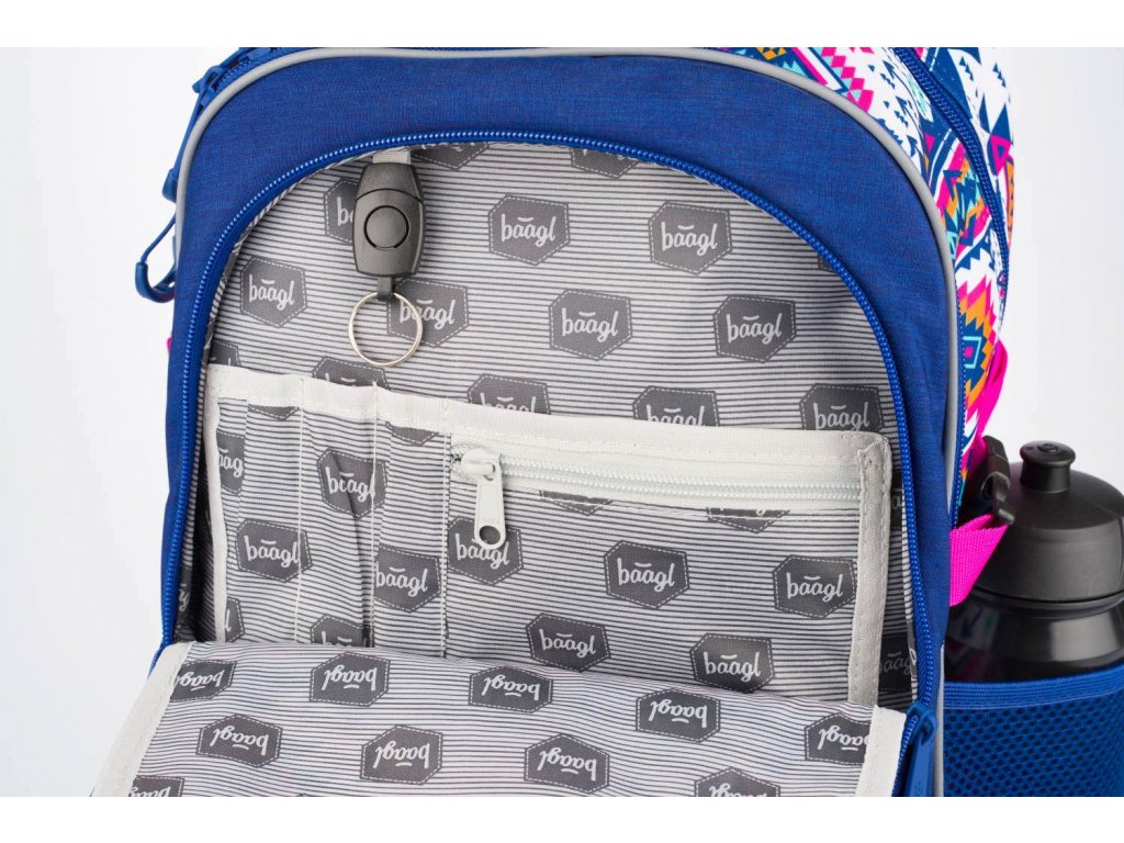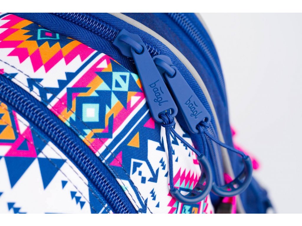 Školní batoh Baagl Core Boho je vymakaný do posledního detailu. Má 3 samostatné komory na zip. V té zadní je kapsa na 15 palcový notebook či tablet a v té přední kapsa na drobnosti a na tužky. Nechybí ani poutko na klíče a schované překvapení v podobě trendy náramku. V přední části batohu je navíc malá kapsa na zip na drobnosti.