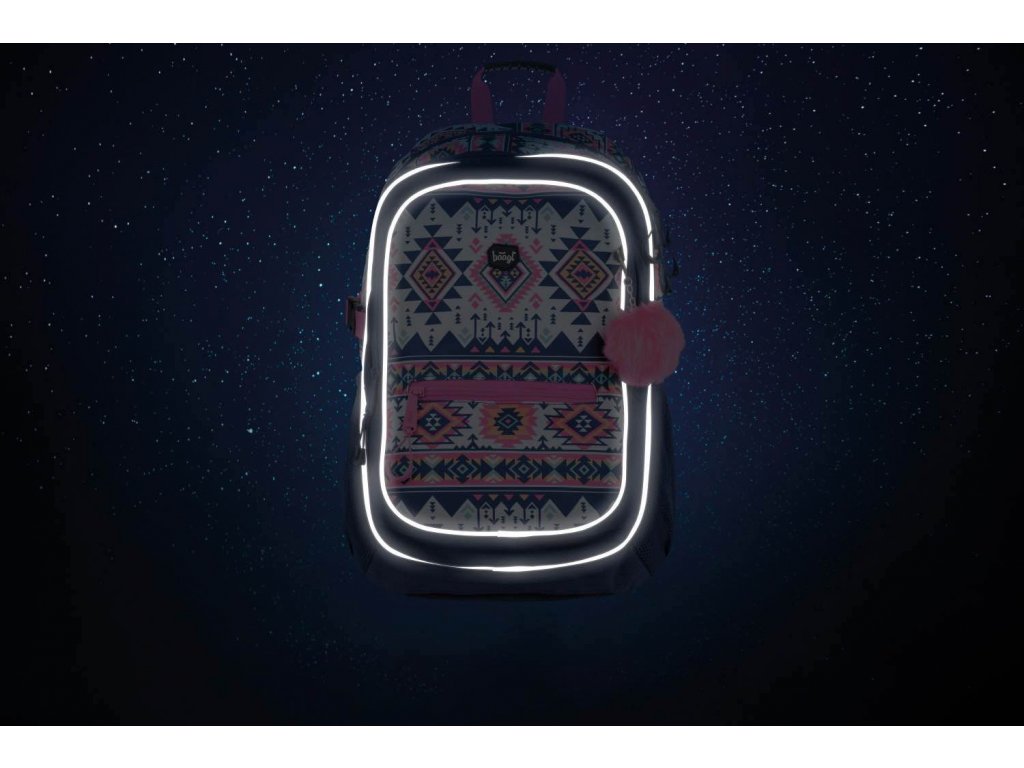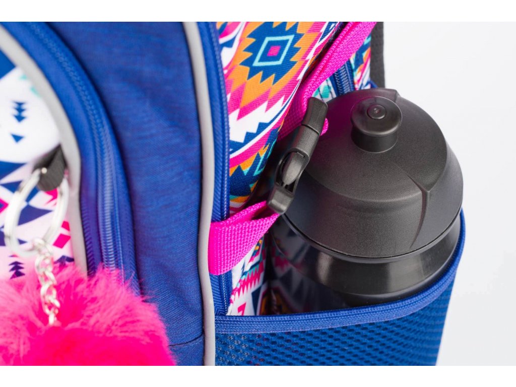 Po bocích jsou dvě síťované kapsy na lahev s přezkou okolo, aby lahev nevypadla. Krásně se do nich vleze jedna z našich lahví. Batoh navíc zdobí trendy přívěsek. Na batohu jsou zakomponovány reflexní prvky pro větší bezpečnost.