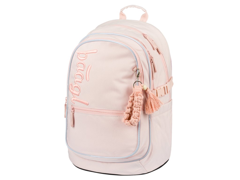 Školní batoh Baagl Core Creamy je vymakaný do posledního detailu. Má 3 samostatné komory na zip. V té zadní je kapsa na 15 palcový notebook či tablet a v té přední kapsa na drobnosti a na tužky. Nechybí ani poutko na klíče a schované překvapení v podobě trendy náramku. V přední části batohu je navíc malá kapsa na zip na drobnosti.