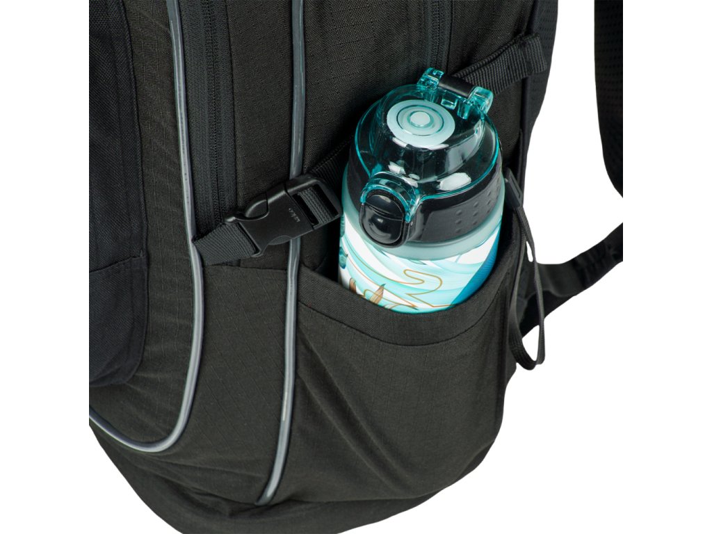 • Boční kapsy z pevného materiálu, které jsou vhodné pro jednu z našich láhví na pití.