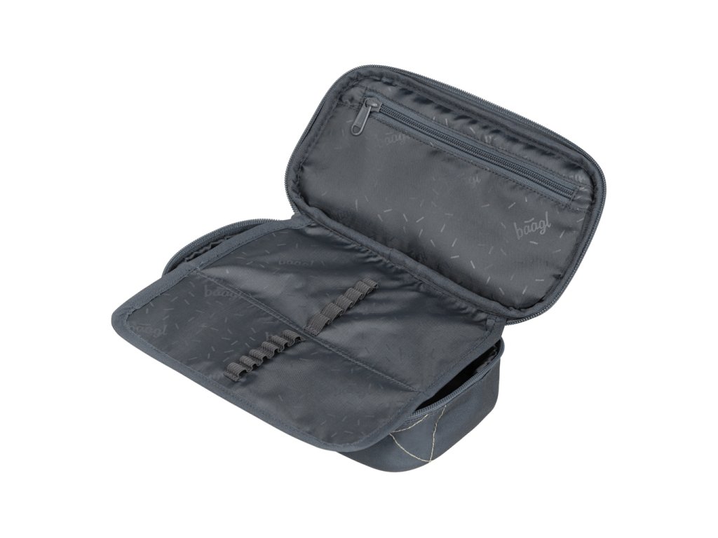 • Kompaktní penál na zip s prostornou hlavní komorou a dvojitou výklopnou chlopní nabízí dostatek prostoru pro psací potřeby i drobnosti.