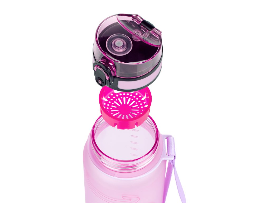 Uzamykatelné víčko nepropustí ani kapku nápoje a zaručuje jednoduché a intuitivní používání. Součástí láhve je i sítko, díky kterému můžete láhev použít i na limonády s ovocem nebo čaj (materiál je vhodný i pro horké nápoje). K láhvi je připevněné také poutko pro pohodlné nošení v ruce.