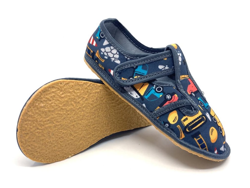 Barefoot bačkory Anatomic Machines s oblíbeným motivem bagrů a dalších strojů. Vzdušné, ohebné, a jedny z nejlehčích na trhu.
