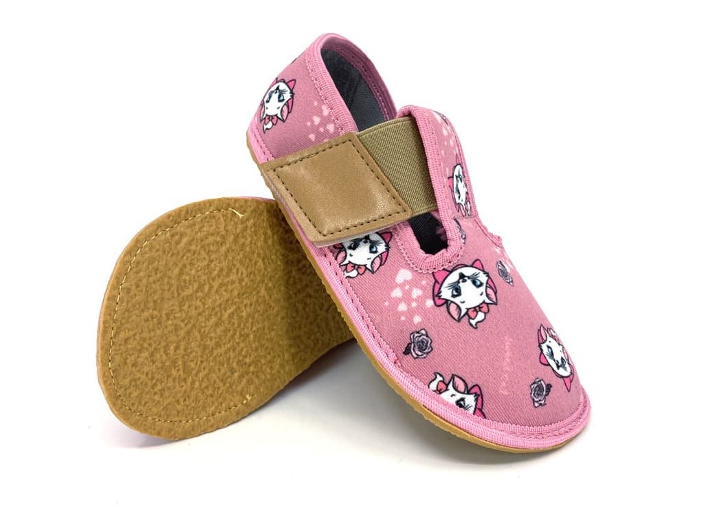 Barefoot bačkory Crave Elastic Pink Cat s oblíbeným motivem Pink cat - kočičky. Vzdušné, ohebné, a jedny z nejlehčích papuček na trhu. Ideální dětské papuče do školky, školy, ale i na doma.