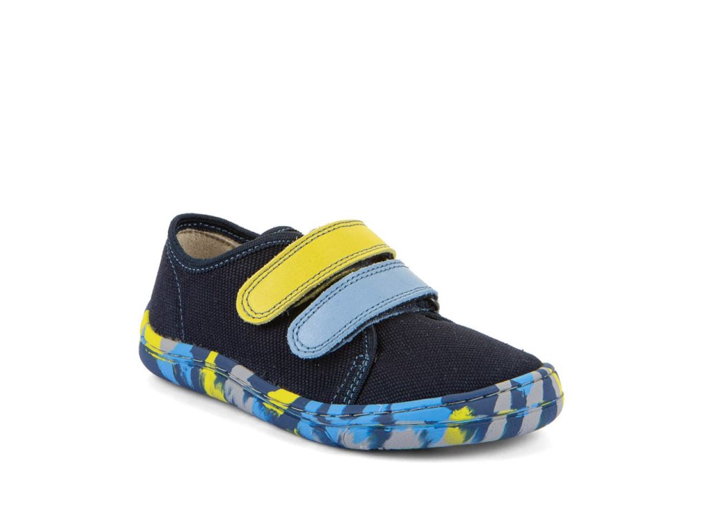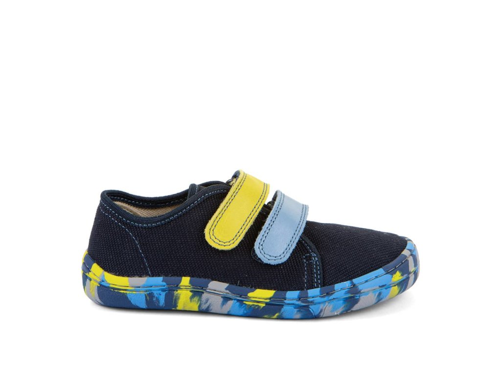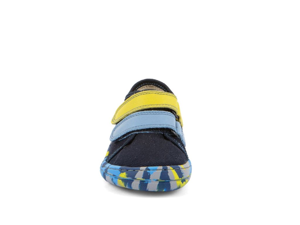 Barefoot textilní tenisky Barefoot Froddo Blue + G1700440-14 v modré barvě. Textilní vrchní část se dvěma suchými zipy z kůže a podrážka z gumy. Upravený model s novou ekologičtější vnitřní stélkou z mikrovlákna. Dají se použít jako tenisky pro teplejší dny, bačkory a nebo boty do tělocviku.