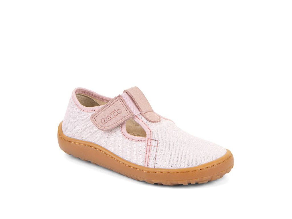 Barefoot Froddo Canvas T-bar G1700439-2 Pink Shine jsou barefoot bačkory vhodné na doma nebo do školy či školky, ale použitelné i na běhání venku při teplém počasí. Sednou dětem s úzkou nohou a normálním a nižším nártem. Podrážka je ohebná všemi směry, gumová.