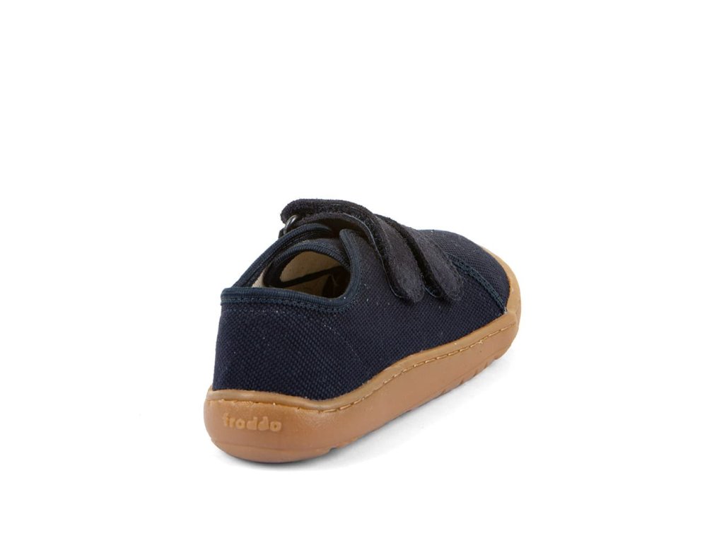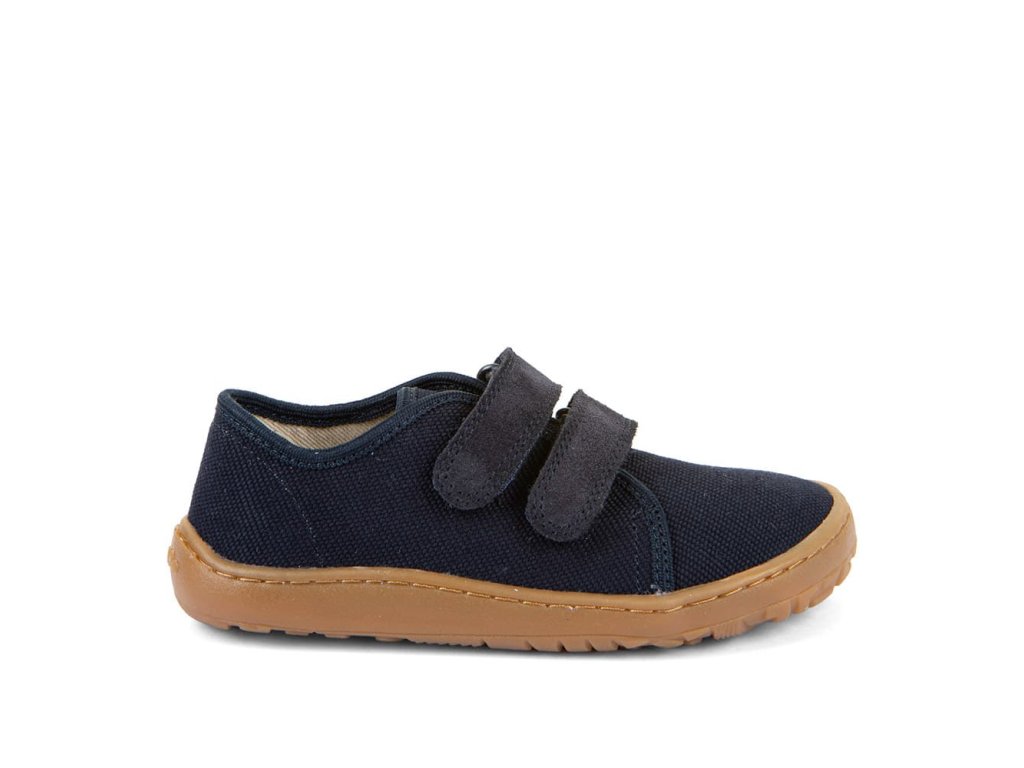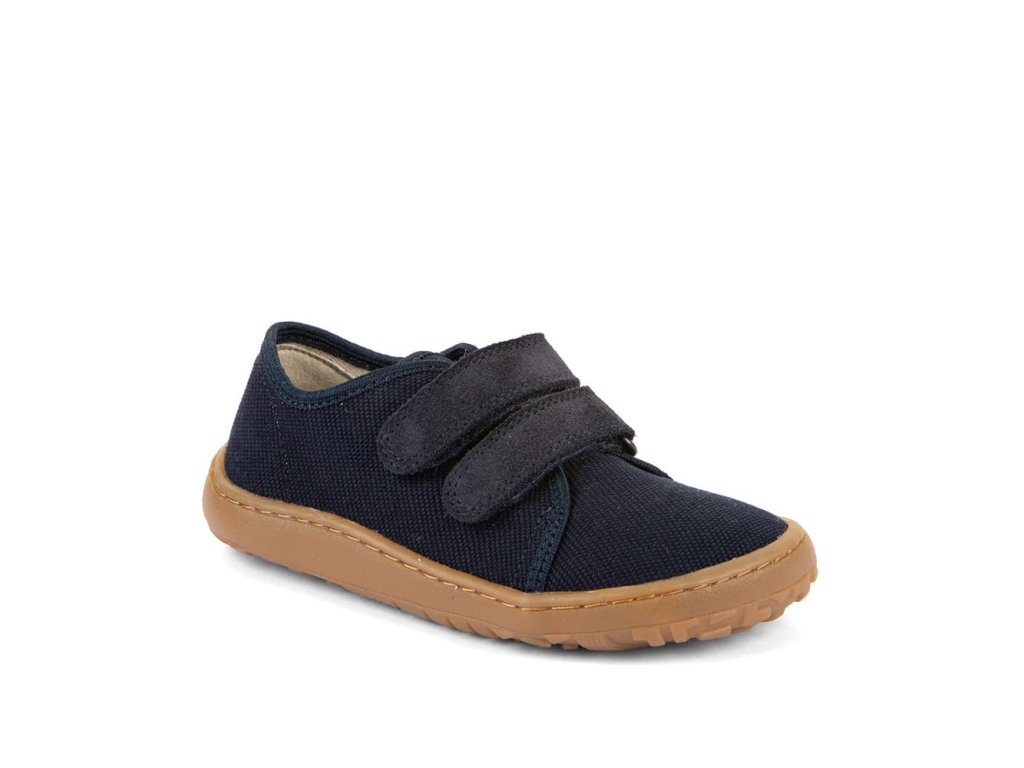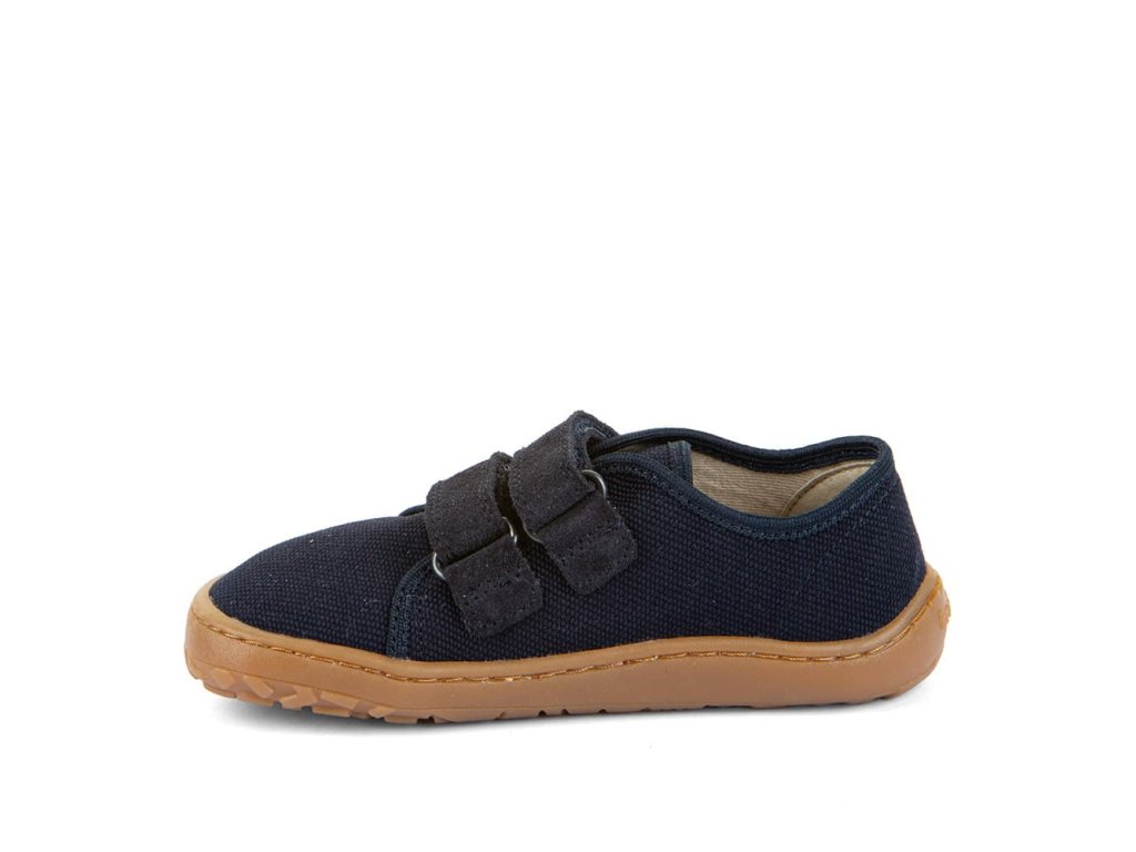 Barefoot textilní tenisky Barefoot Froddo Dark Blue G1700440-2 v unisex tmavě modré barvě. Textilní vrchní část se dvěma suchými zipy z kůže a podrážka z gumy. Upravený model s novou ekologičtější vnitřní stélkou z mikrovlákna. Dají se použít jako tenisky pro teplejší dny, bačkory a nebo boty do tělocviku.