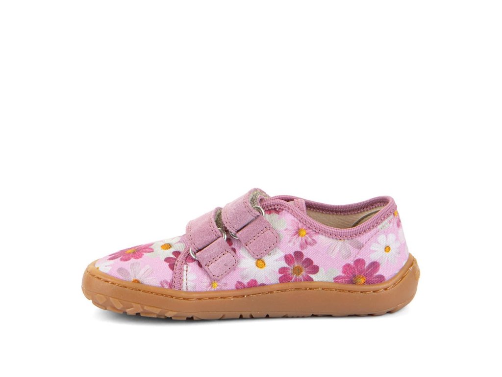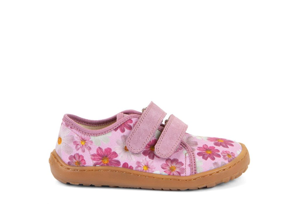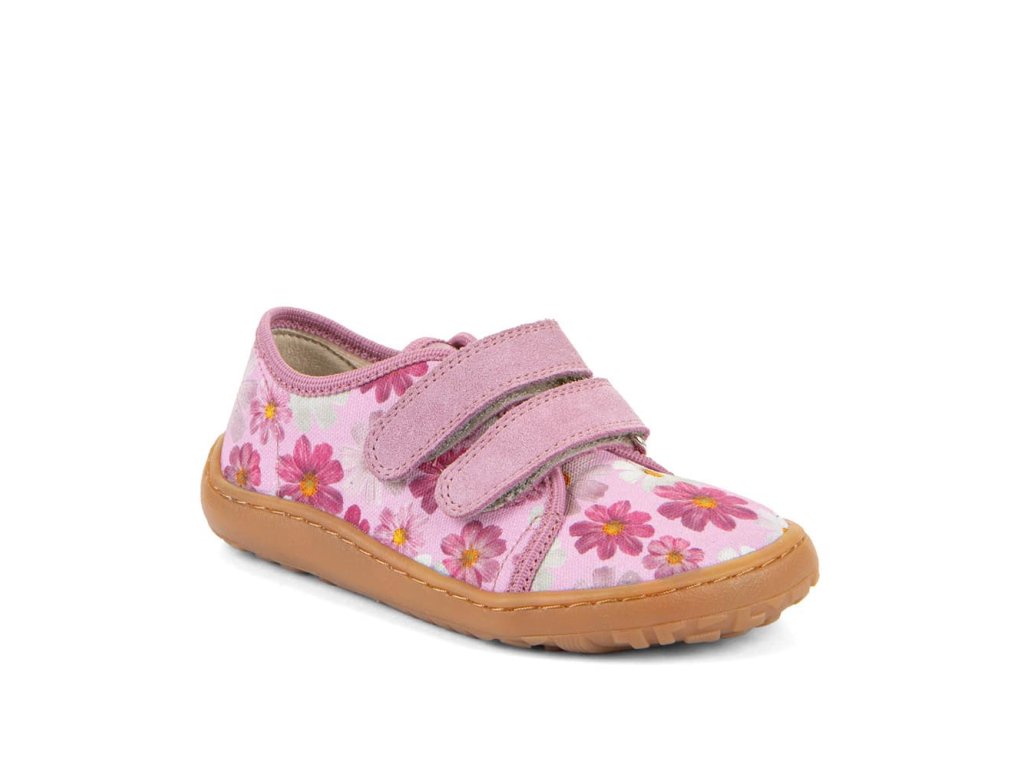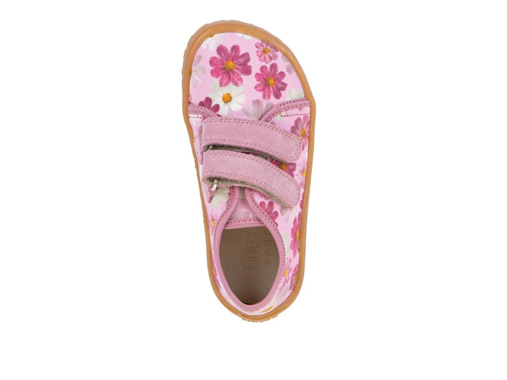 Barefoot textilní tenisky Barefoot Froddo Flowers G1700440-9 s oblíbeným motivem kytiček v růžové barvě. Textilní vrchní část se dvěma suchými zipy z kůže a podrážka z gumy. Upravený model s novou ekologičtější vnitřní stélkou z mikrovlákna. Dají se použít jako tenisky pro teplejší dny, bačkory a nebo boty do tělocviku.