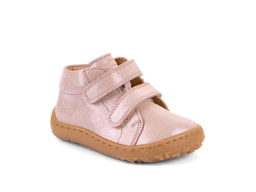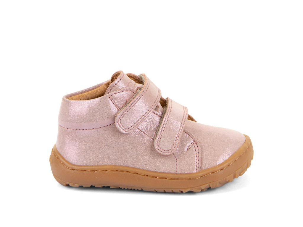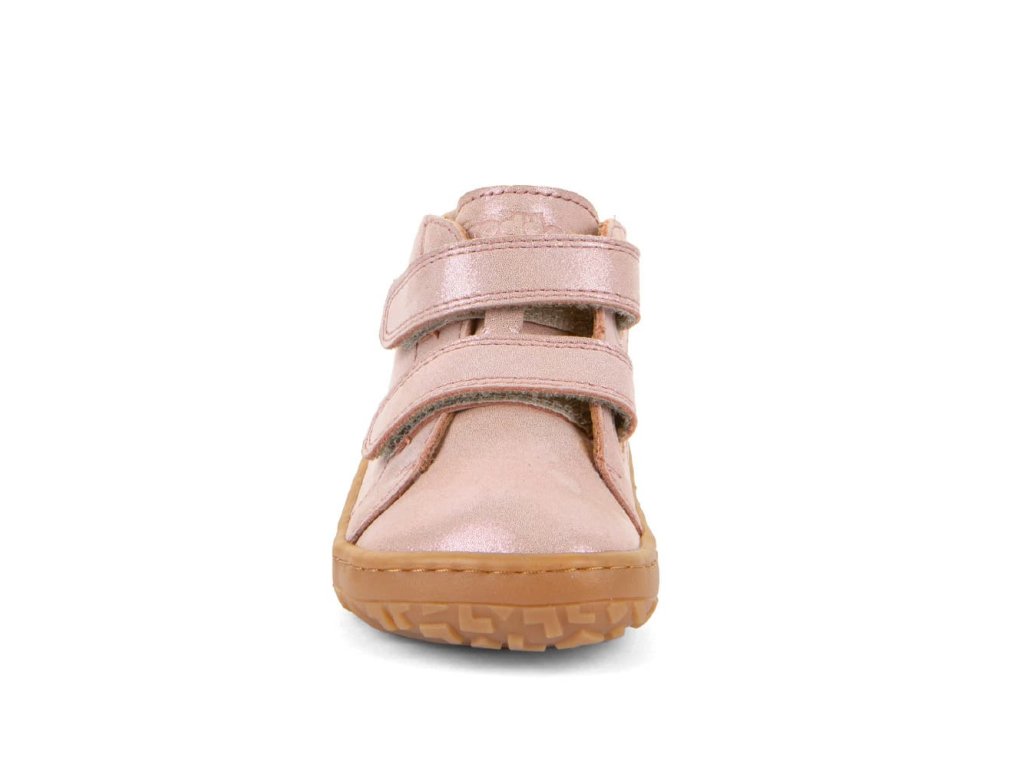 Dětské barefoot celoroční boty Barefoot Froddo G2130369-11 Pink Shine v třpytivé růžové barvě jsou kotníkové kožené boty. Vhodné na jaro, podzim, ale i na chladné léto. Kombinují stylový design a snadné nazouvání i pro děti. Vrchní část boty je kompletně kožená, a stejně tak i podšívka je z jemné kůže. Praktické zapínání na suchý zip umožňuje snadné nazouvání i dětem. Podrážka je z gumy.