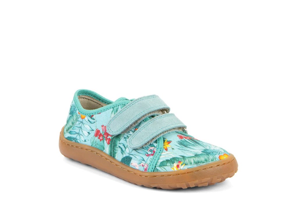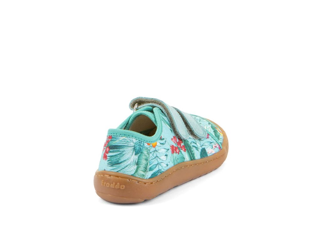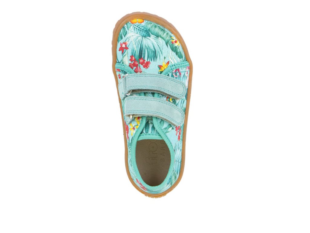 Barefoot textilní tenisky Barefoot Froddo Mint G1700440-17 s oblíbeným motivem kytiček v mintové barvě. Textilní vrchní část se dvěma suchými zipy z kůže a podrážka z gumy. Upravený model s novou ekologičtější vnitřní stélkou z mikrovlákna. Dají se použít jako tenisky pro teplejší dny, bačkory a nebo boty do tělocviku.