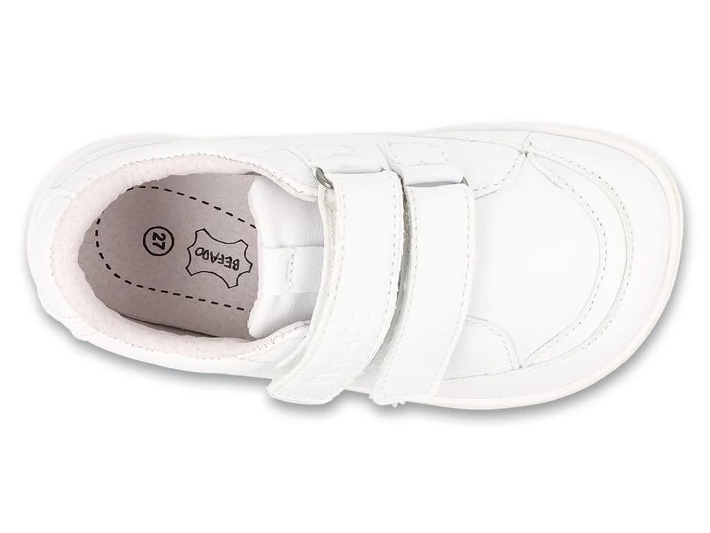 Barefoot tenisky Befado 004X002 004Y002 - Bílé jsou lehounké celoroční barefoot boty. Svšek tvoří syntetická kůže, podšívka je kožená. Tyto dětské barefoot tenisky se velmi snadno nazouvají a dobře se utahují díky zapínání na suchý zip. Tenká gumová podrážka je velmi flexibilní a lehká. Botičky udělají parádu a pohodlí především ve městě, ale i na hřišti.