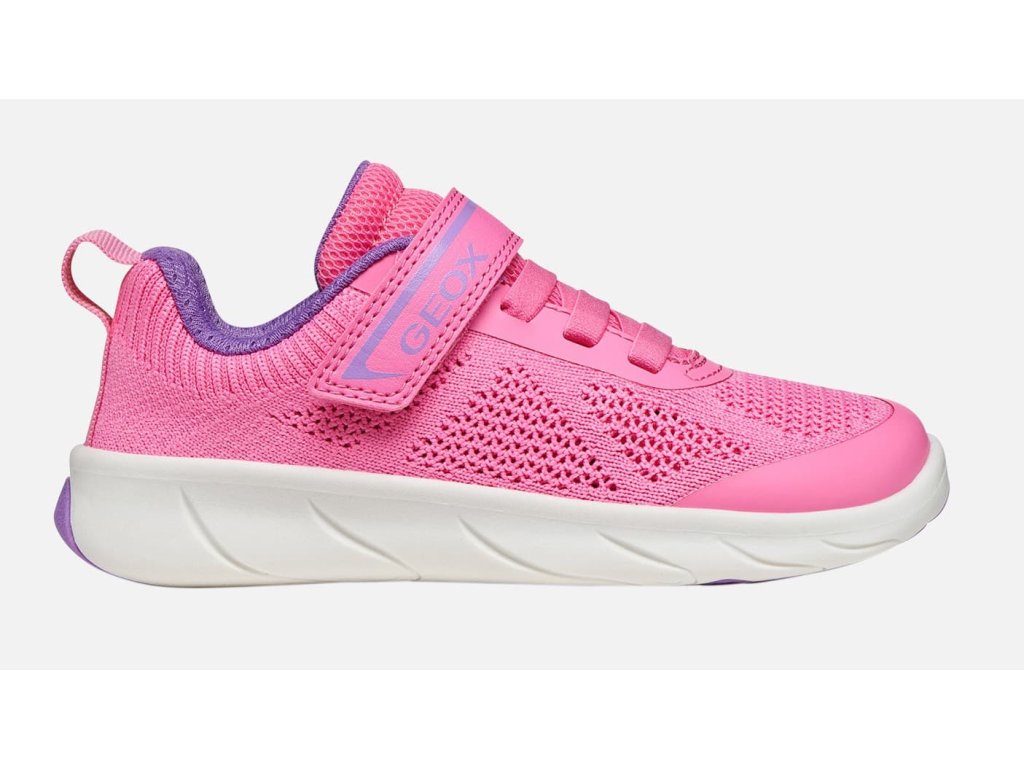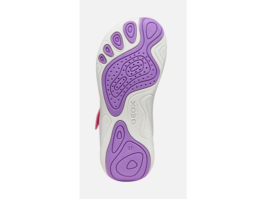Dívčí barefoot tenisky Geox - J Foot-run Pink/Levander - v růžové barvě jsou ideální volbou pro aktivní děti na hřiště i běhání po venku. Jsou lehké a perfektně prodyšné díky textilnímu svršku technologii Respira™, která zajišťuje ideální prodyšnost díky speciální membráně v podrážce. Ta odvádí vlhkost a zabraňuje pronikání vody dovnitř. Zcela nová gumová podrážka je velmi flexibilní a lehounká a přilne i na různorodém povrchu.