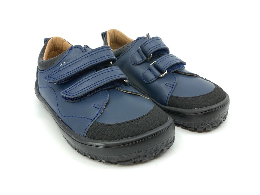 Nízké dětské celoroční boty Beda BFN 170030/W/NL/O/ GR Navy jsou veganské, bez použití přírodní kůže (značení NL - no leather).