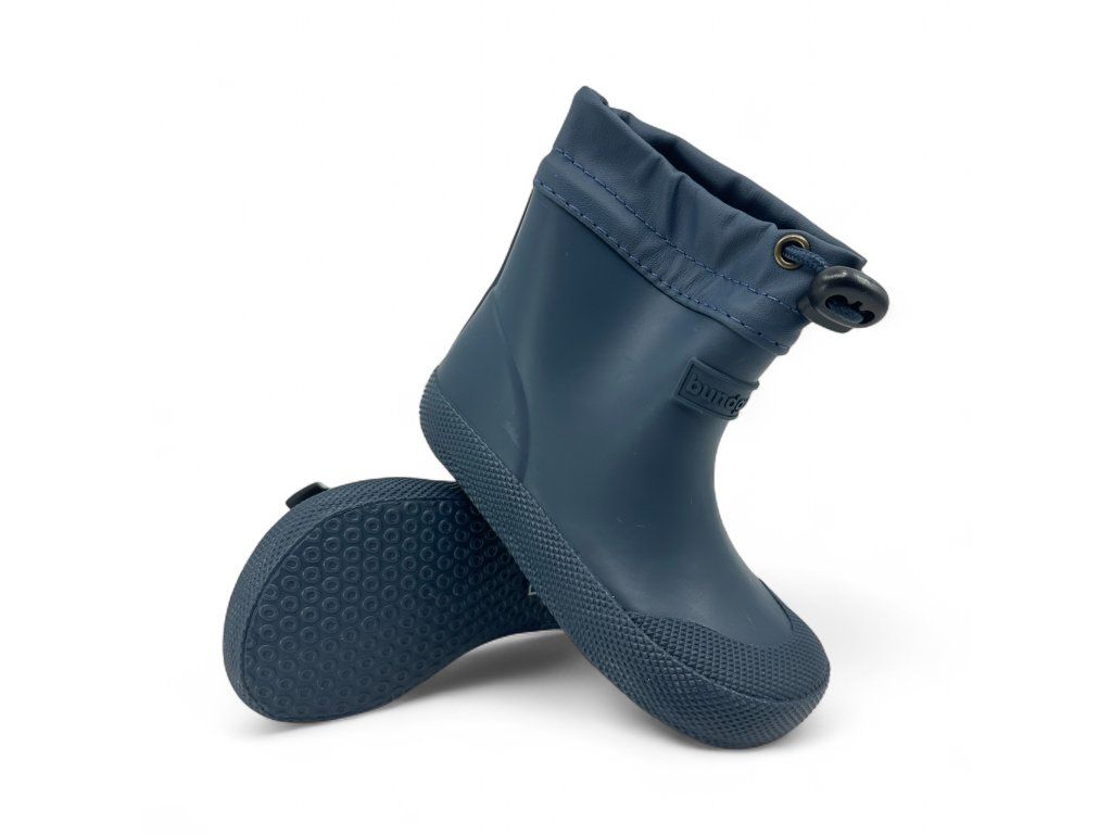 Dětské barefootové holínky Bundgaard Navy v uni tmavě modré barvě mají velice ohebnou podrážku a celé jsou velice měkké, vyrobené speciálně pro malé děti. Díky praktickému stahování v oblasti lýtka do bot nenateče voda. Zesílená špička s dostatkem prostoru pro prsty, vhodné i pro dominantní palec. Boty jsou bez zateplení, mají textilní podšívku s vyjímatelnou vložkou a reflexní prvek v zadní části.