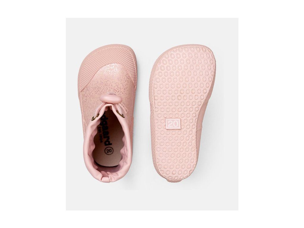 Dětské barefootové holínky Bundgaard Cover Old Rose Sparkle v růžové barvě s třpytivým vzorem. Mají velice ohebnou podrážku a celé jsou měkkoučké, vyrobené speciálně pro malé děti. Díky praktickému stahování v oblasti lýtka do bot nenateče voda. Zesílená špička s dostatkem prostoru pro prsty, vhodné i pro dominantní palec. Boty jsou bez zateplení, mají textilní podšívku s vyjímatelnou stélkou a reflexní prvek v zadní části.