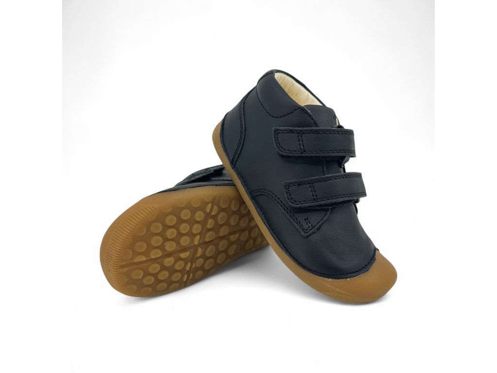 Stylové černé Bundgaard Petit Black jsou kožené celoroční botičky pro nejmenší děti, vhodné i pro ty, kteří právě začínají chodit. Mají vynikající tvar špičky, který je vhodný i pro tzv. dominantní palec (kdy je palec delší než ostatní prstíky). Boty nejsou příliš široké, a jsou tak vhodné spíše pro normální až užší nohu.
