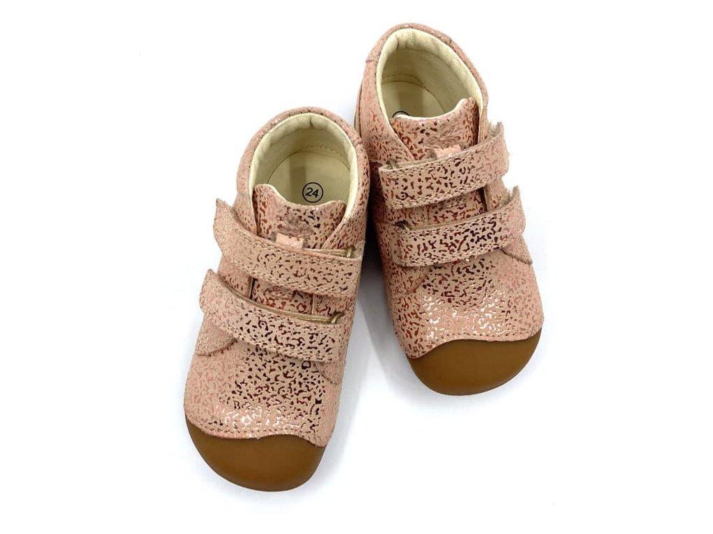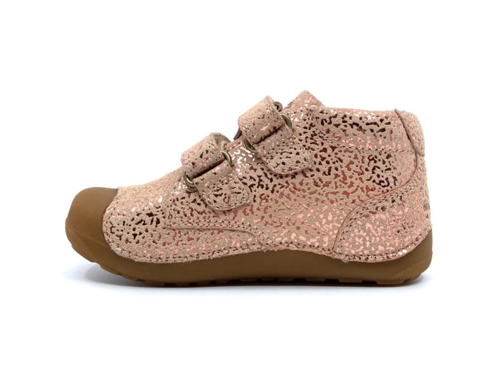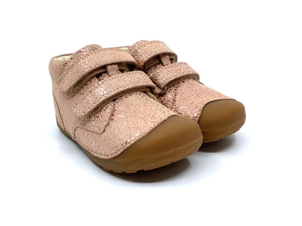 Bundgaard Petit Strap jsou jedny z nejoblíbenějších botiček na první krůčky. Vyznačují se jednoduchým a přitom kvalitním zpracováním kůže a podrážky z přírodní gumy. Barevné provedení Rose Gold Stream - světle růžová s lesknoucím se vzorem - se bude hodit ke každému holčičímu šatníku.