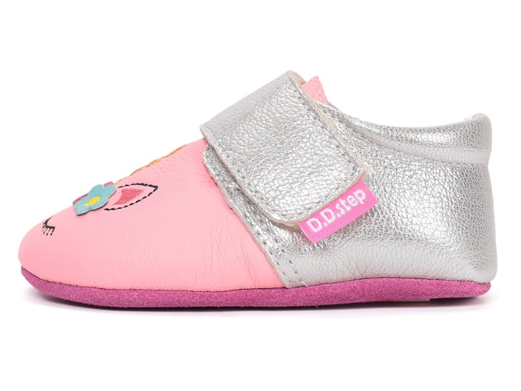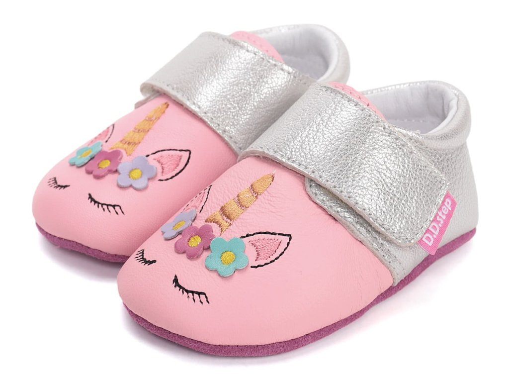 Kožené capáčky DD Step K1596-61702 Strawberry jsou ideální pro první krůčky, ať už kolem nábytku, tak i ty úplně samostatné bez opory. V růžové barvě s oblíbeným motivem jednorožce.
