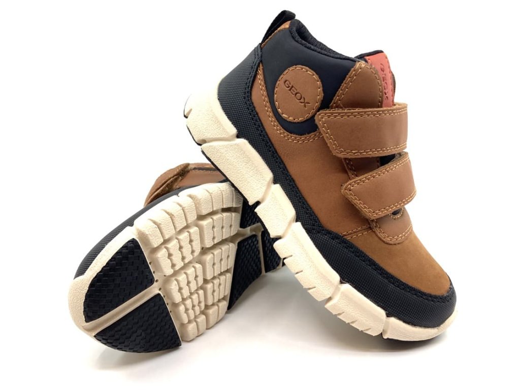 Chlapecké kotníkové boty Geox Flexyper Boy LT Brown v hnědé barvě s černými detaily. Tyto celoroční boty kombinují moderní design s pokročilými technologiemi pro maximální pohodlí a ochranu. Ideální volbou pro děti, které chtějí spolehlivou a stylovou obuv pro každodenní nošení.