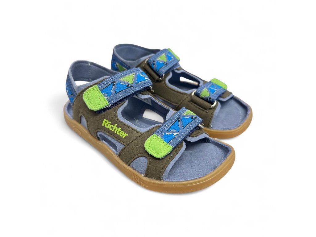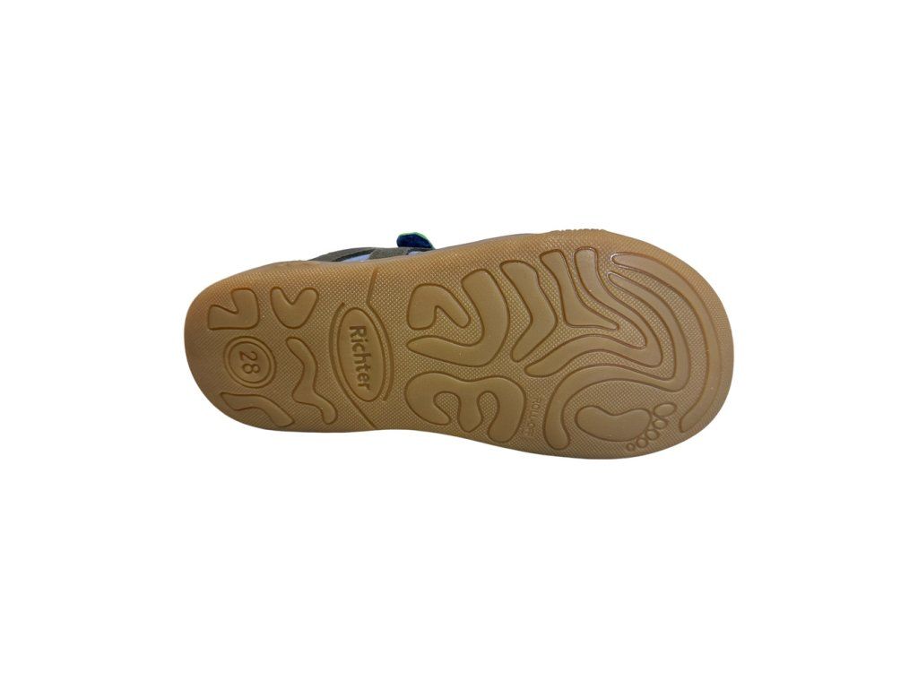 Chlapecké barefoot sandálky Richter 0851 3294 8501 Yerba Apple. Díky flexibilní, zcela ploché podrážce a široké špičce si děti užijí přirozený pocit chůze téměř jako naboso – přesně tak, jak to jejich nohy pro zdravý vývoj potřebují.