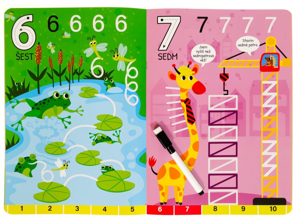 Obtahuj čáry, piš čísla, pak vše smaž a začni znovu. Hravé obrázky vybízejí k obtahování rovných, klikatých i zakřivených čar, které v sobě nápadně ukrývají i čísla. Sešit s pevnými lesklými stránkami je vhodný pro děti, které se učí první tahy i detailnější linky a psaní čísel a počítání. Nemusí se bát přetahovat a dělat chyby. Když se něco nepovede, jednoduše to smažou a díky stíratelnému fixu, který je součástí sešitu, se můžou k úkolům vracet znovu a znovu.Doplňkové parametry
