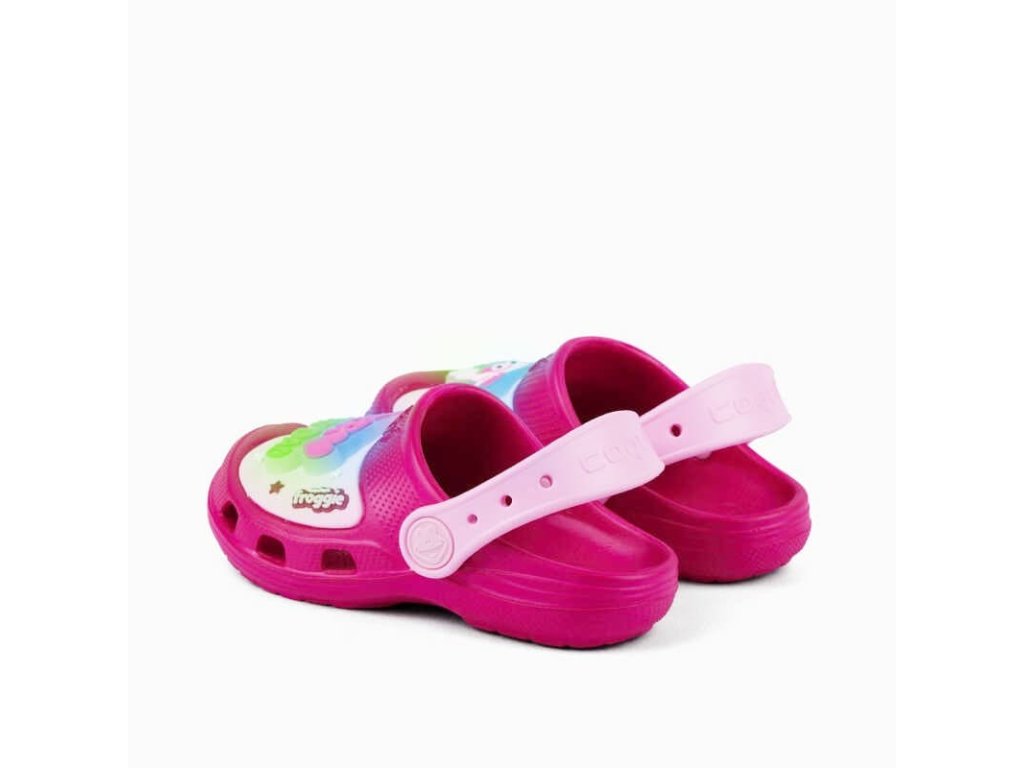 Svítící dětské nazouváky Coqui Maxi v růžové barvě s obrázkem Coqui hero Froggie. Při chůzi obrázek žabáka a nápis "HERO OF MY DAD" barevně blikají. Neklouzavý materiál CoquiAir.