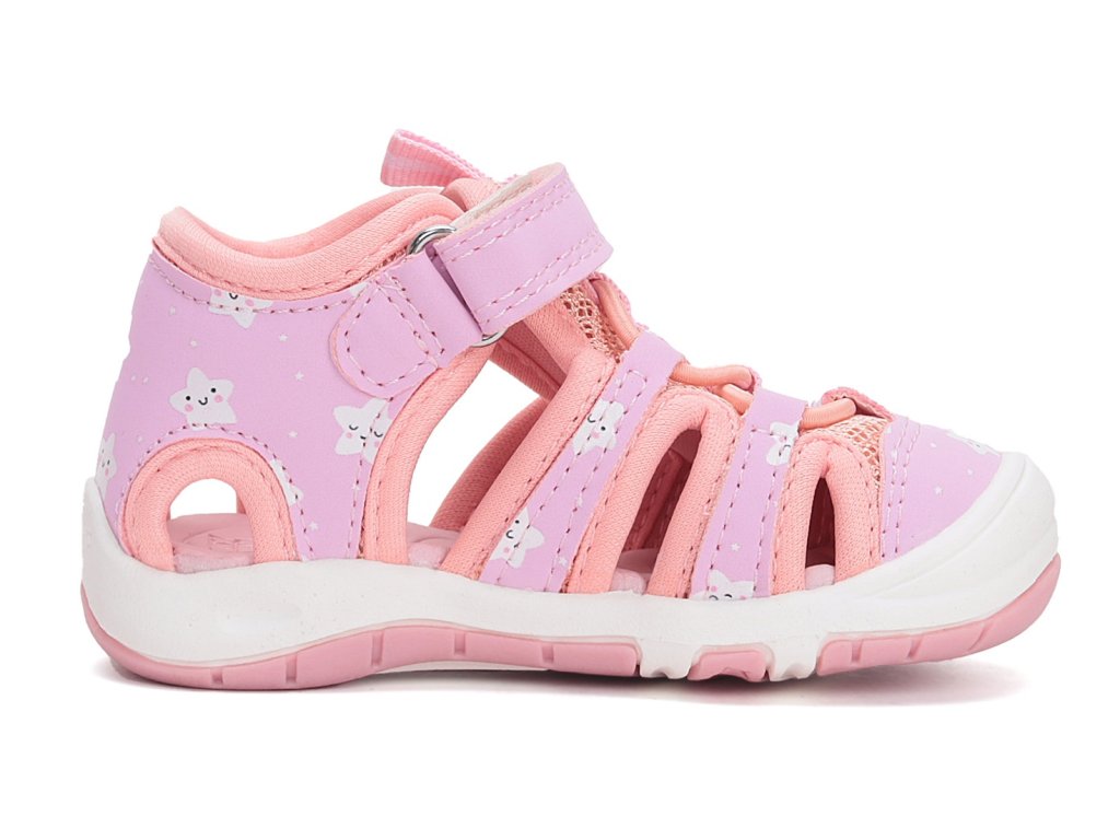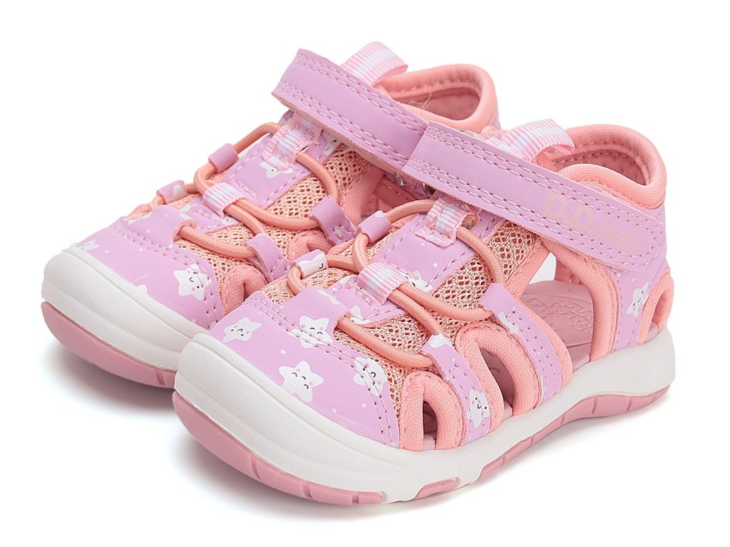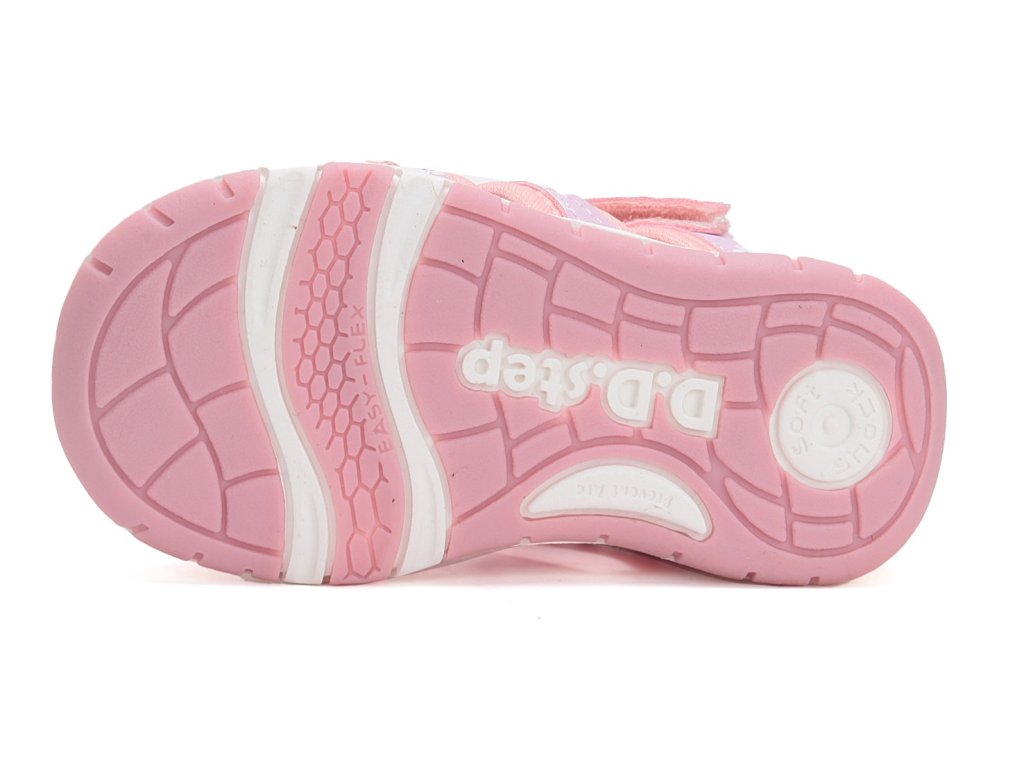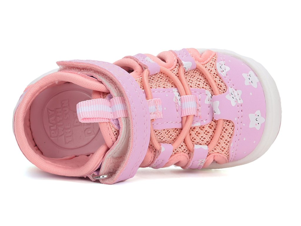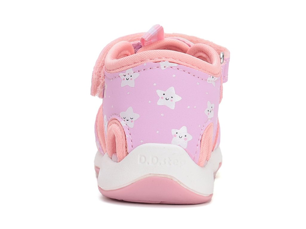 Dívčí sandále DD Step G065-51957C Pink v růžové barvě s motivem hvězdiček se brzy stanou oblíbeným kouskem vaši malé princezny. Svršek tvoří prodyšná textilie v kombinaci s potištěnou syntetickou kůží. Sandálky jsou velmi ohebné a lehké, perfektní na každodenní nošení na hřiště i na procházky během parného léta.