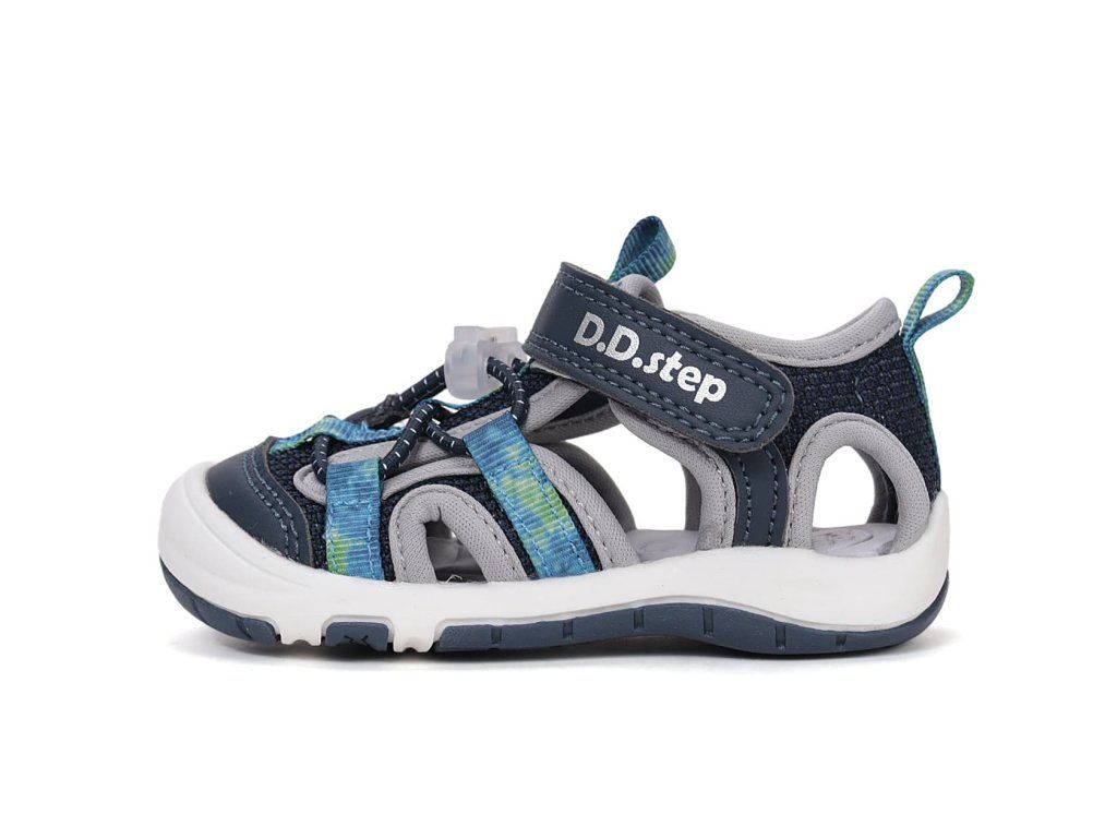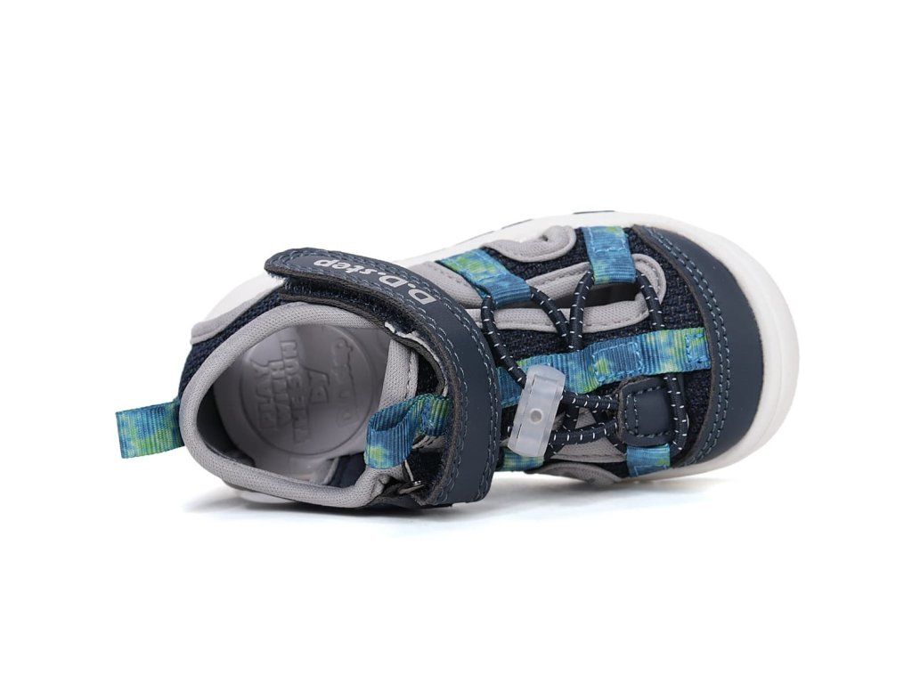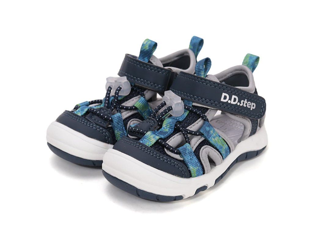 Dětské sandále DD Step G065-61599A Royal Blue v modré barvě s šedými prvky se brzy stanou oblíbeným kouskem vaši ratolesti. Svršek tvoří kombinace prodyšné síťoviny a syntetiky, podšívka je textilní. Sandálky jsou velmi ohebné a lehké, perfektní na každodenní nošení na hřiště i na procházky během parného léta.