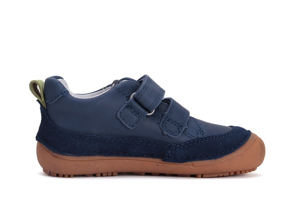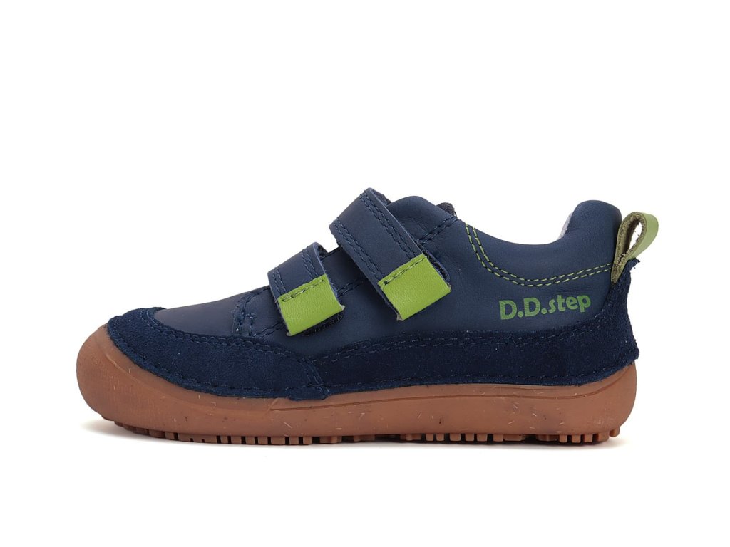 Inovované barefoot celoročky S063 - nejohebnější bota od DDstep - nově s nulovým dropem. DD Step nově označuje kožené boty písmenem S na začátku názvu, proto S063. Konkrétně DDstep S063-51483 Royal Blue je z hladké kůže v modré barvě s praktickým okopem z broušené kůže. Boty jsou z hladké, dobře omyvatelné kůže (pouze jazyk a okop jsou z broušené kůže).