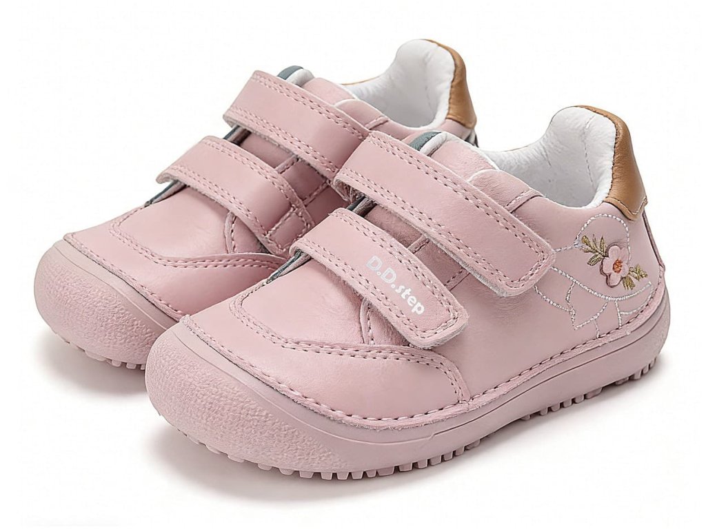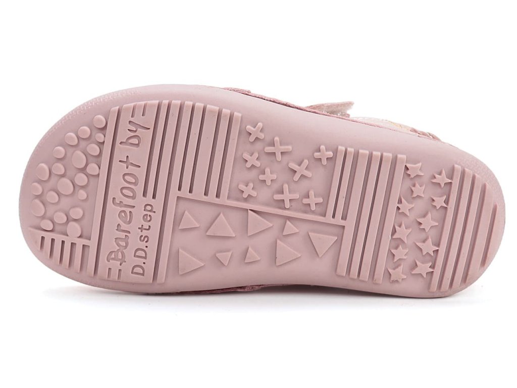 Inovované barefoot celoročky S063 - nejohebnější bota od DDstep - nově s nulovým dropem. DD Step nově označuje kožené boty písmenem S na začátku názvu, proto S063. Konkrétně DD Step S063-61572 Baby Pink Baby Pink je z hladké kůže v růžové barvě s dívčím motivem. Boty jsou z hladké, dobře omyvatelné kůže (pouze jazyk je broušené kůže).