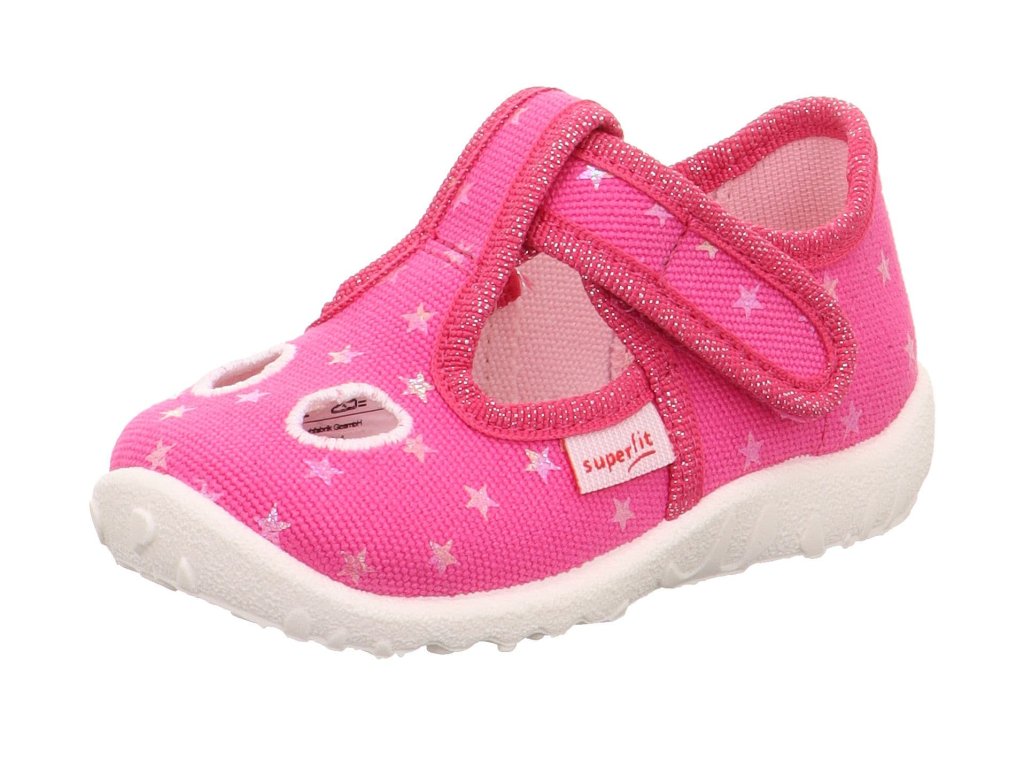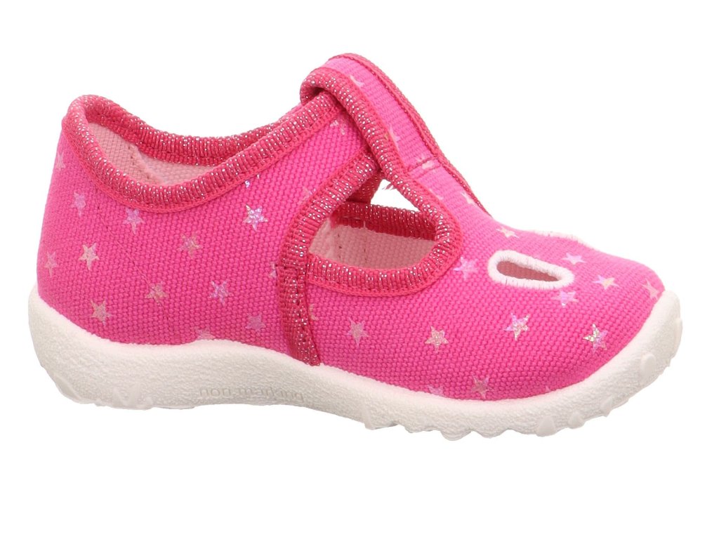 Dětské bačkory Superfit Spotty 1-009248-5540 Pink v růžové barvě s motivem hvězdiček. V nártové části mají dva praktické otvory pro lepší prodyšnost.