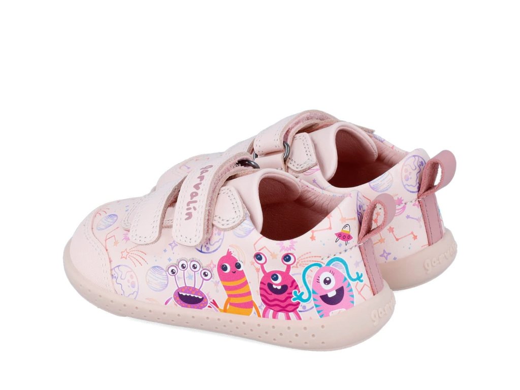 Garvalín 242324-A779 v dívčí růžové barvě s roztomilým motivem příšerek. Jsou velmi pohodlné z měkké hladké kůže a končí pod kotníkem. Vnitřek je z mikrovlákna, které působí jako kůže, a je velmi příjemné na omak, s vyjímatelnou stélkou. Na špičce boty je ochranná syntetická vrstva, aby boty více vydržely při dětském zakopávání.