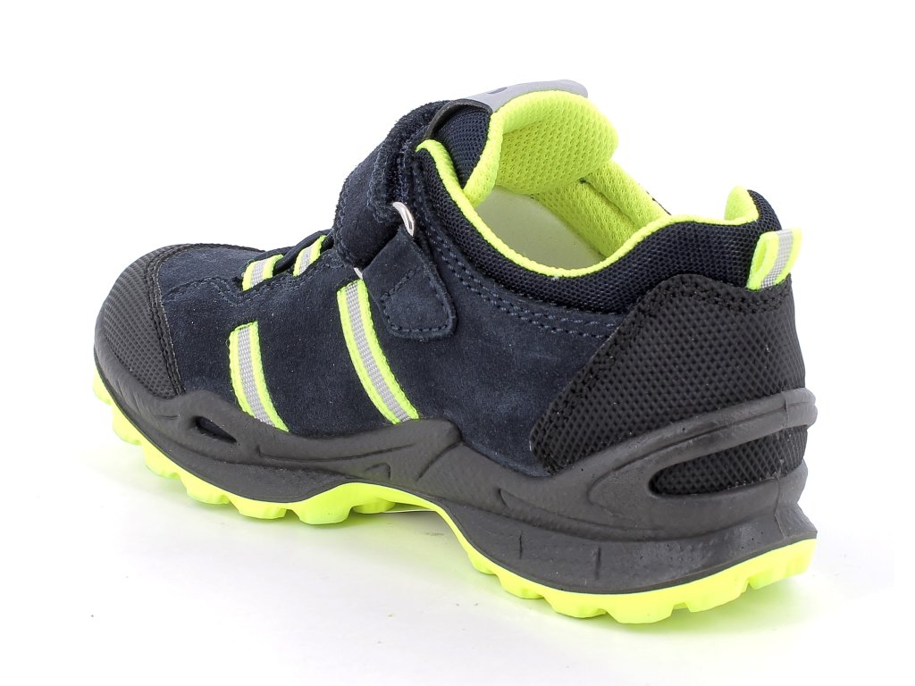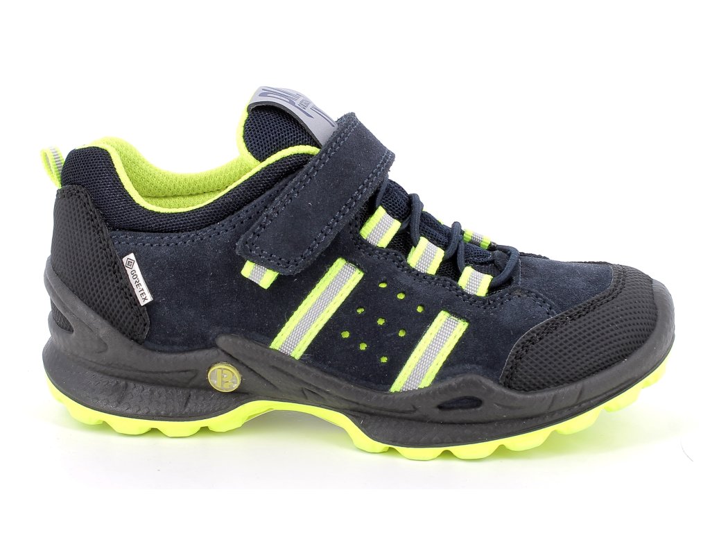 Outdoorové chlapecké boty Primigi 1378900. Broušená tmavě modrá kůže s kontrastními svítivě žlutými detaily a gumovými ochranými prvky na špičce a patě. Odolná a lehká podrážka s hrubým vzorkem. GoreTex membrána zajistí nepromokavost a zároveň prodyšnost, takže udrží dětské nožky v suchu a pohodlí.