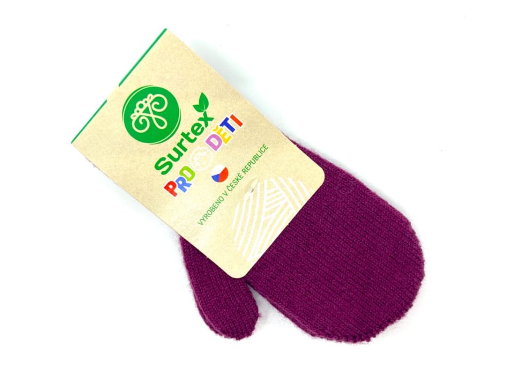 Dětské merino palčáky Surtex ve vínové barvě. Vhodné pro děti ve věku přibližně 6 měsíců - 3 roky.