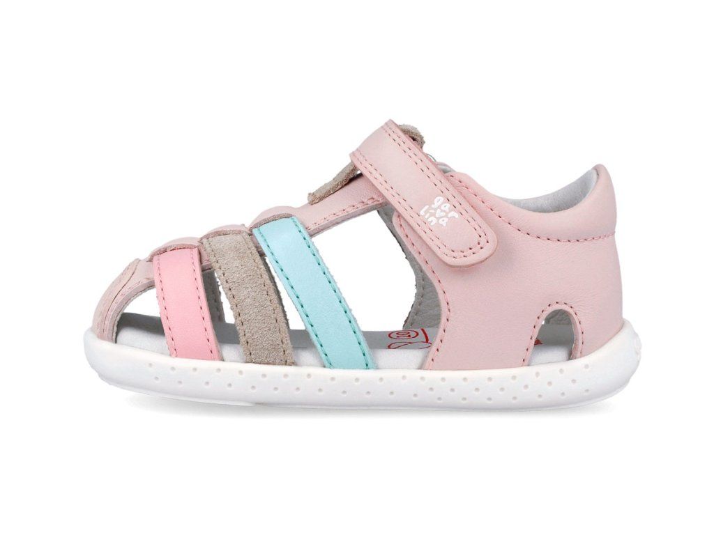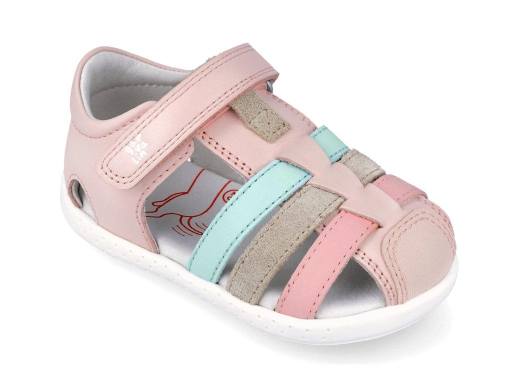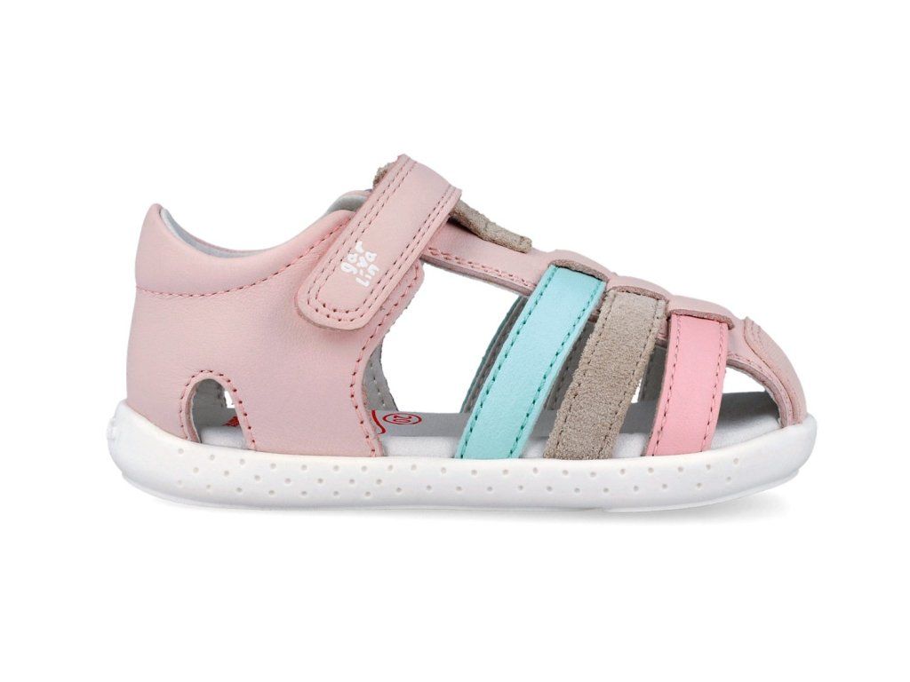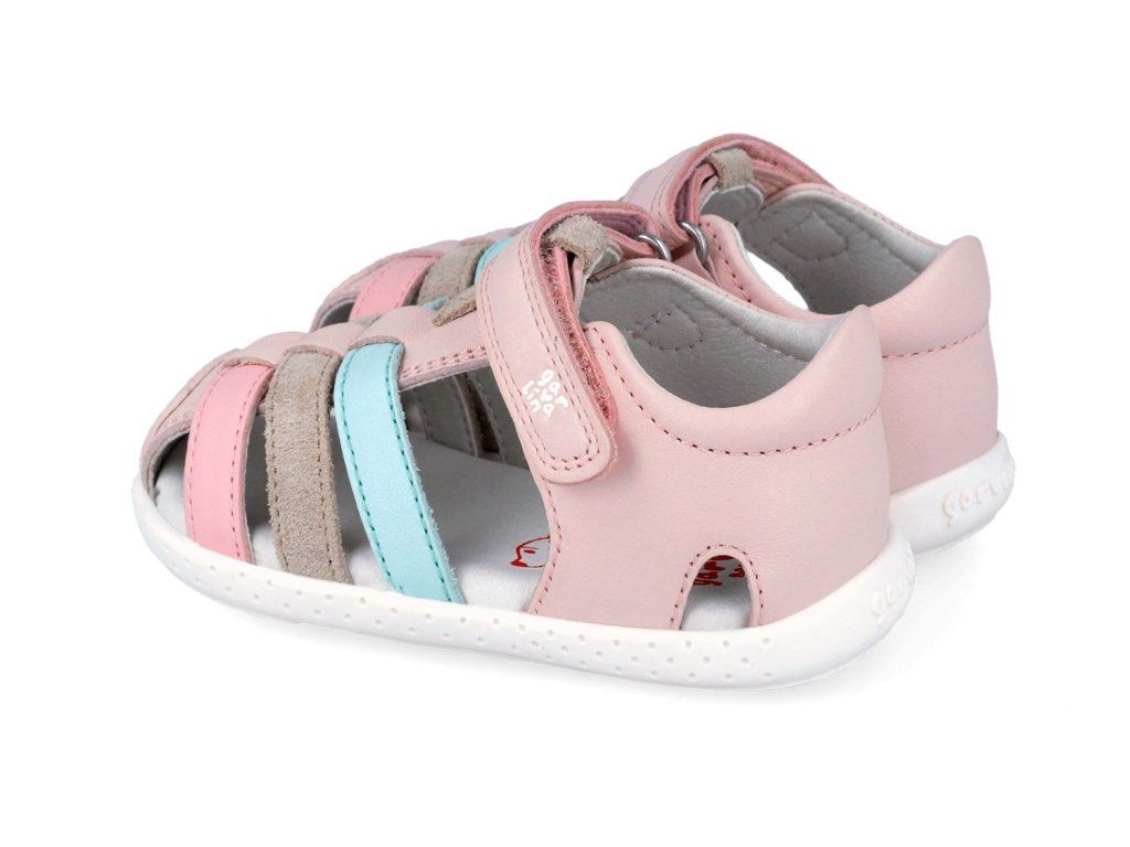 Dětské sandálky Garvalín 262325-C779 Cotton v růžové barvě Cotton s barevnými pásky jsou perfektně měkké a ohebné. Svršek tvoří hladká kůže, která se snadno udržuje, podšívka i stélka jsou taktéž kožené a příjemně měkké. Špička je uzavřená, takže se o prstíky vašeho malého chodce bát nemusíte.