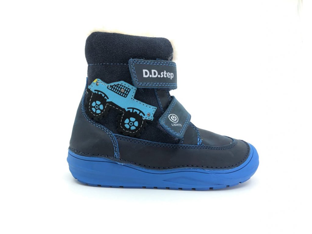 Dětské svítící zimní boty DDstep W071-32 Royal blue s obrázkem autíčka pro kluky. Měkké, pohodlné boty vyššího střihu s hřejivým kožíškem uvnitř celé boty. Vyjímatelná pěnová stélka pro možnost kontroly velikosti s kožíškovým nášlapem. Prostorná široká špička pro volný pohyb prstů v botě a zároveň pevný opatek zamezující "šmajdání". Dva suché zipy pro lepší regulaci v oblasti nártu a kotníku. Podrážka na oko působí silnějším dojmem, avšak je velmi měkká a ohebná, hlavně ve směru chůze.